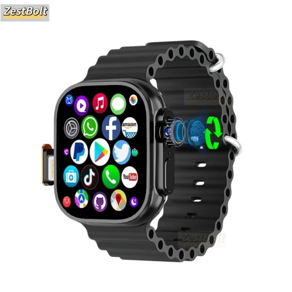 Montre Connectée Android DW100 Pro+ – Appels 4G/5G, GPS, Wi-Fi, NFC, Écran AMOLED 2,29’’, Caméra Rotative – NOIR