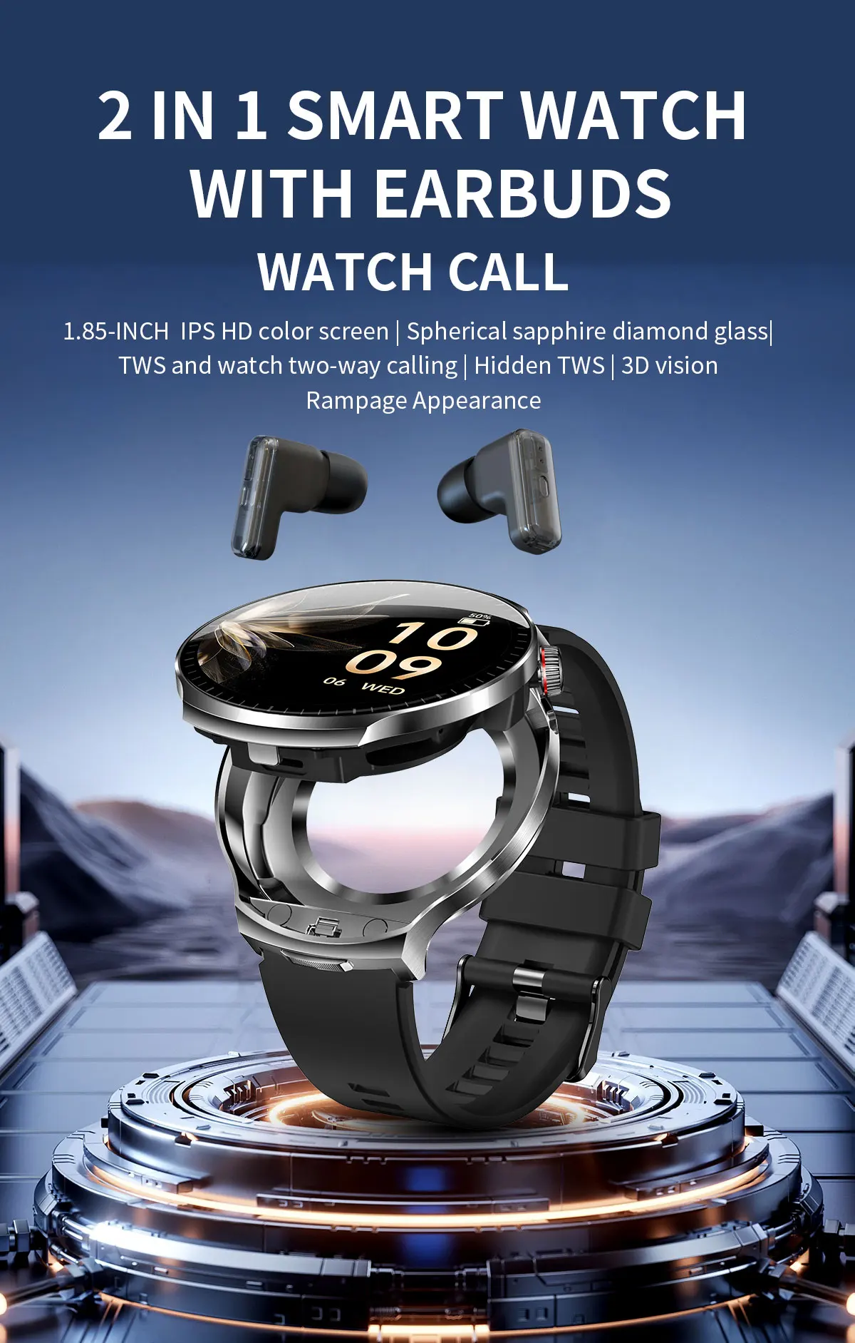 Montre connectée unisexe avec écouteurs TWS intégrés, appels Bluetooth et suivi santé | Innovation 2-en-1 et polyvalence