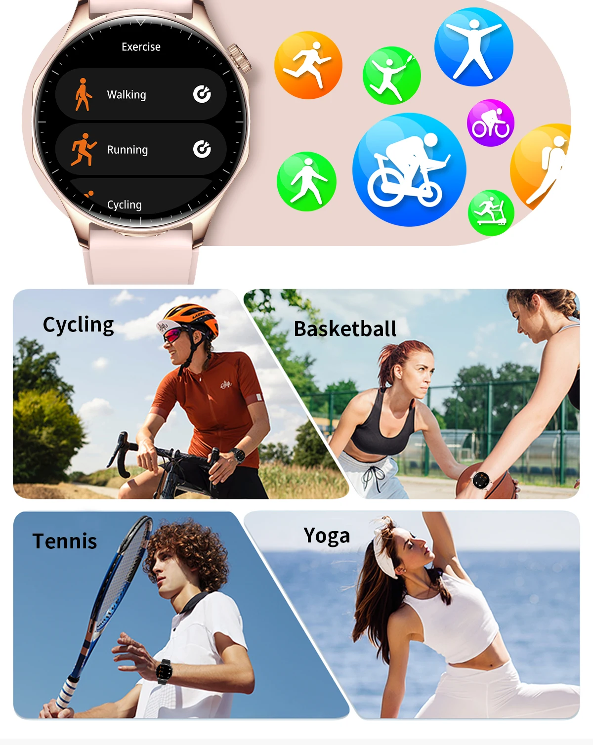 Elle permet le suivi de l’activité physique, la gestion des appels Bluetooth, les notifications et l’écoute de musique directement depuis la montre, tout en conservant un design compact et moderne.
