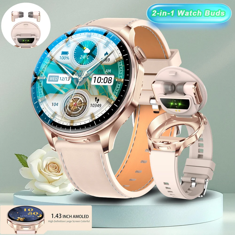 Montre connectée 2-en-1 avec écouteurs Bluetooth intégrés et suivi sportif