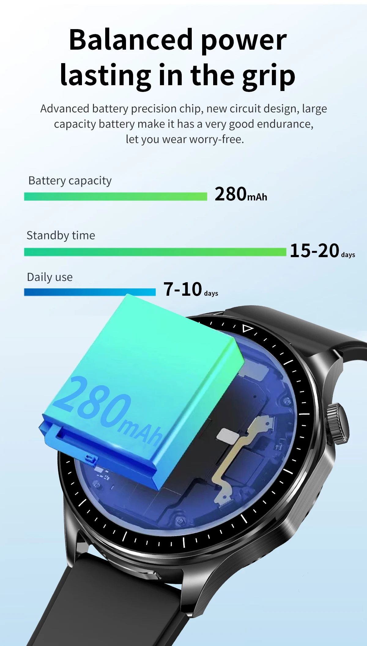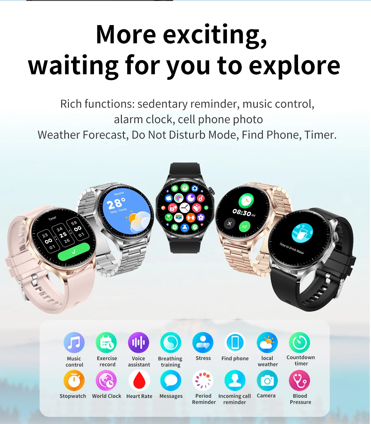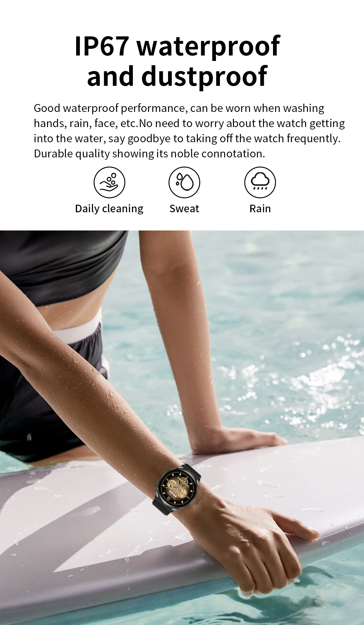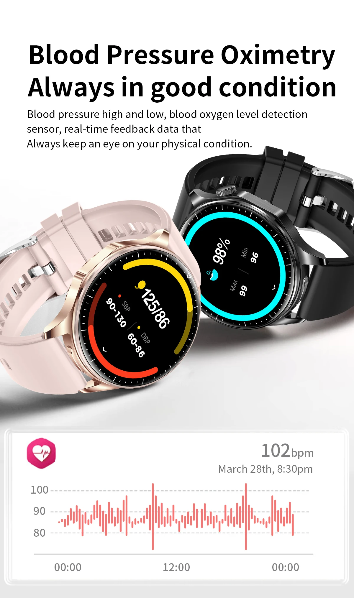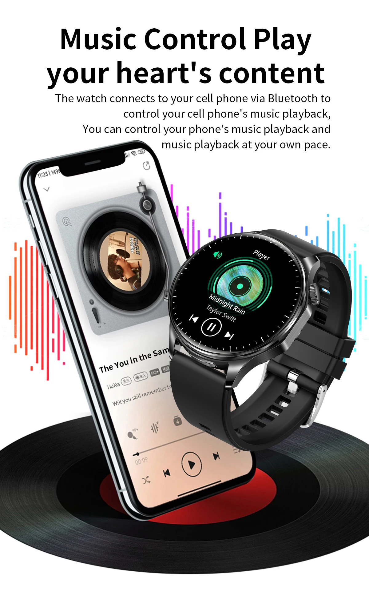 Elle permet le suivi de l’activité physique, la gestion des appels Bluetooth, les notifications et l’écoute de musique directement depuis la montre, tout en conservant un design compact et moderne.