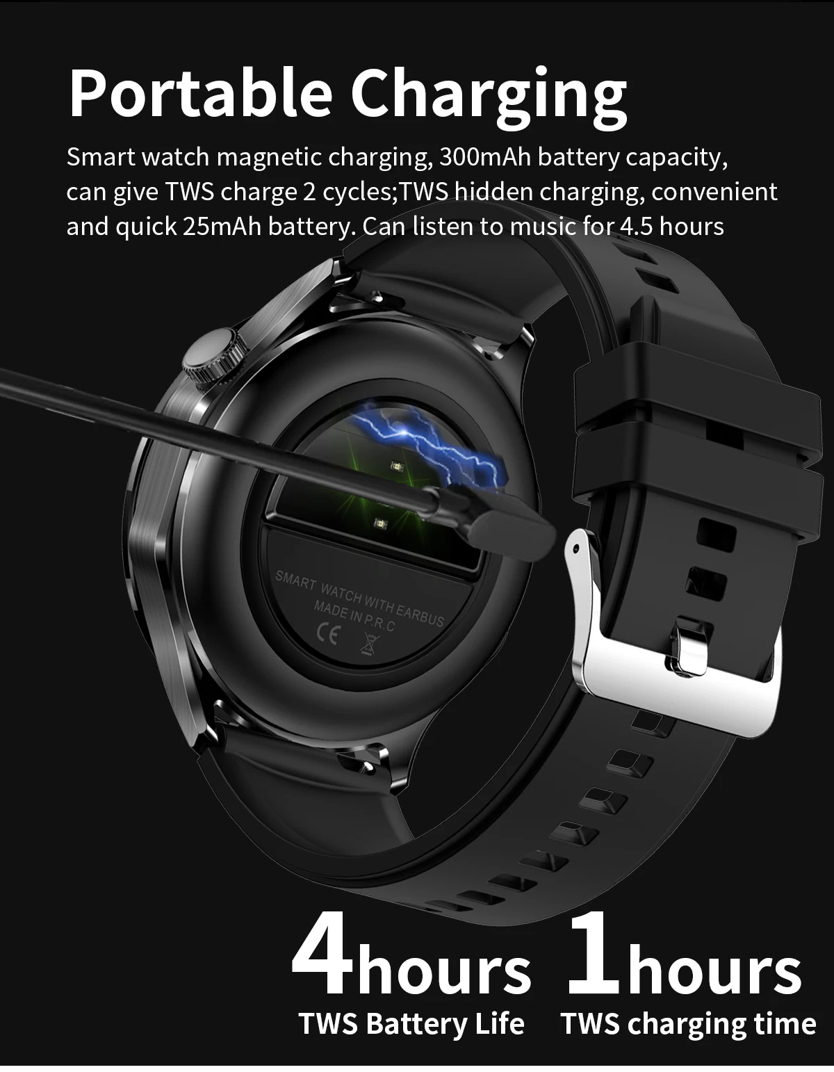 Montre connectée 2-en-1 avec écouteurs Bluetooth intégrés et suivi sportif