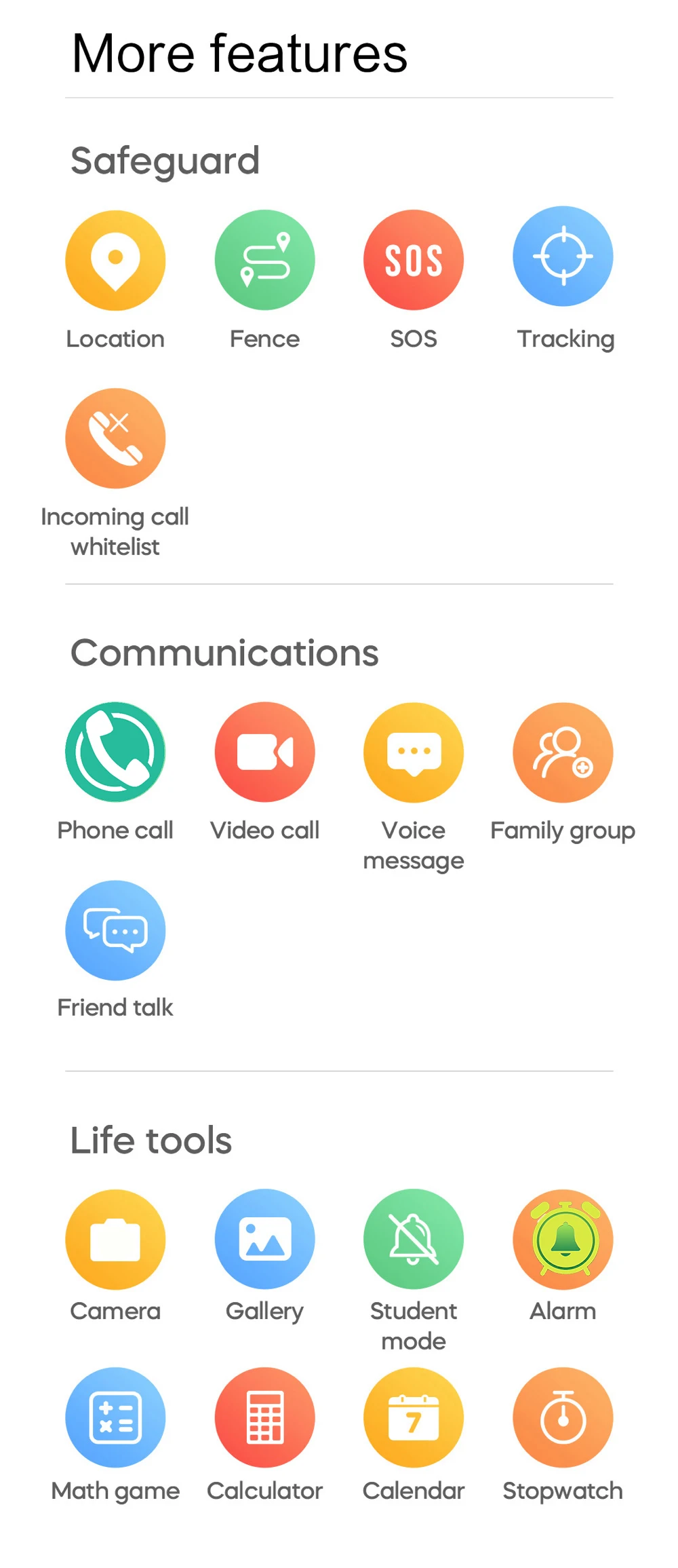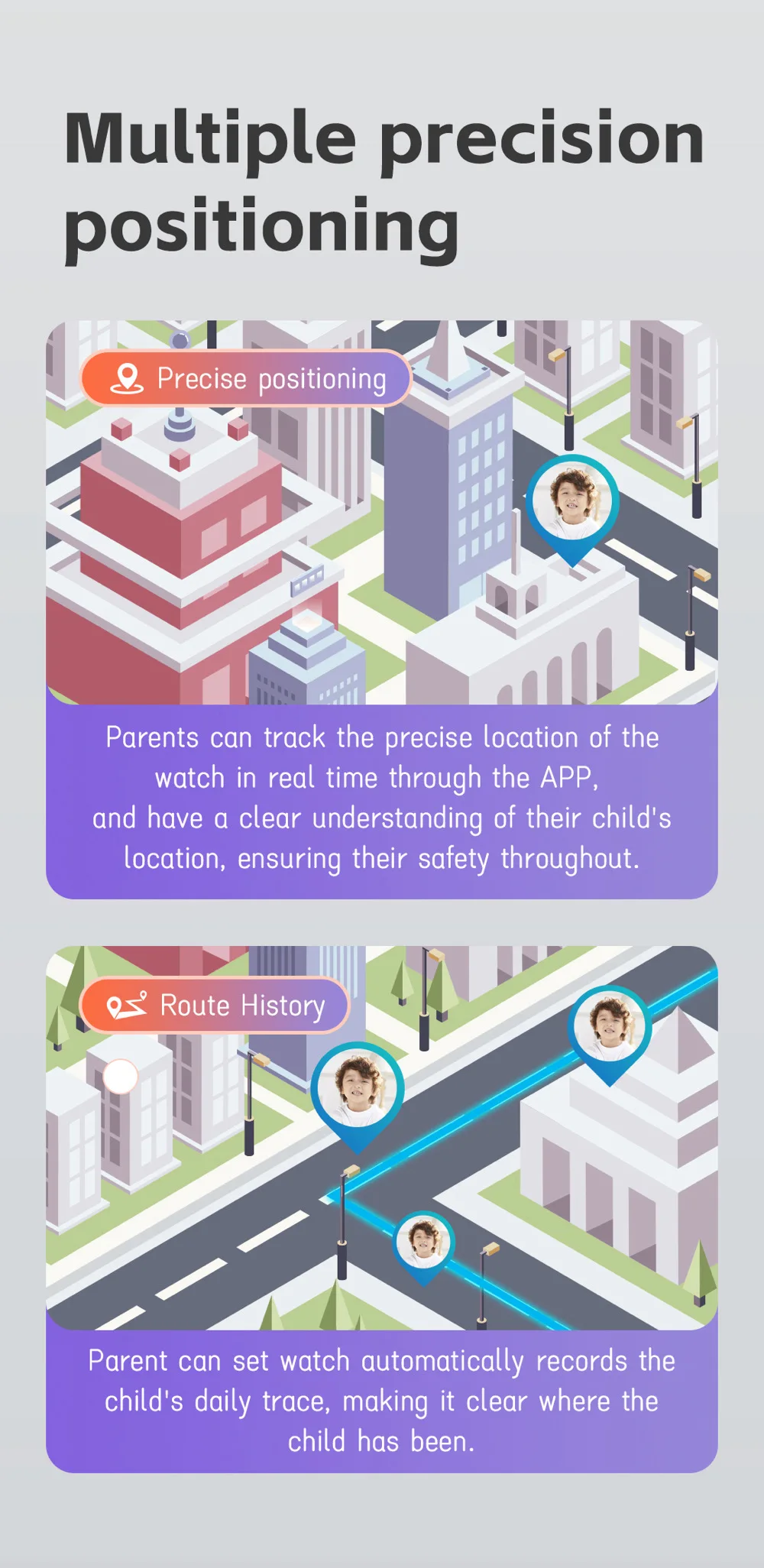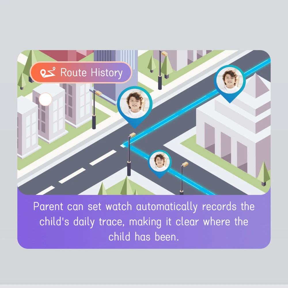Équipée des technologies GPS, Wi-Fi et LBS, la montre offre une localisation précise en temps réel et permet de consulter l’historique des déplacements sur 30 jours. Les parents peuvent configurer plusieurs zones de sécurité (géorepérage) et recevoir des alertes automatiques lorsque l’enfant entre ou sort d’un périmètre défini.