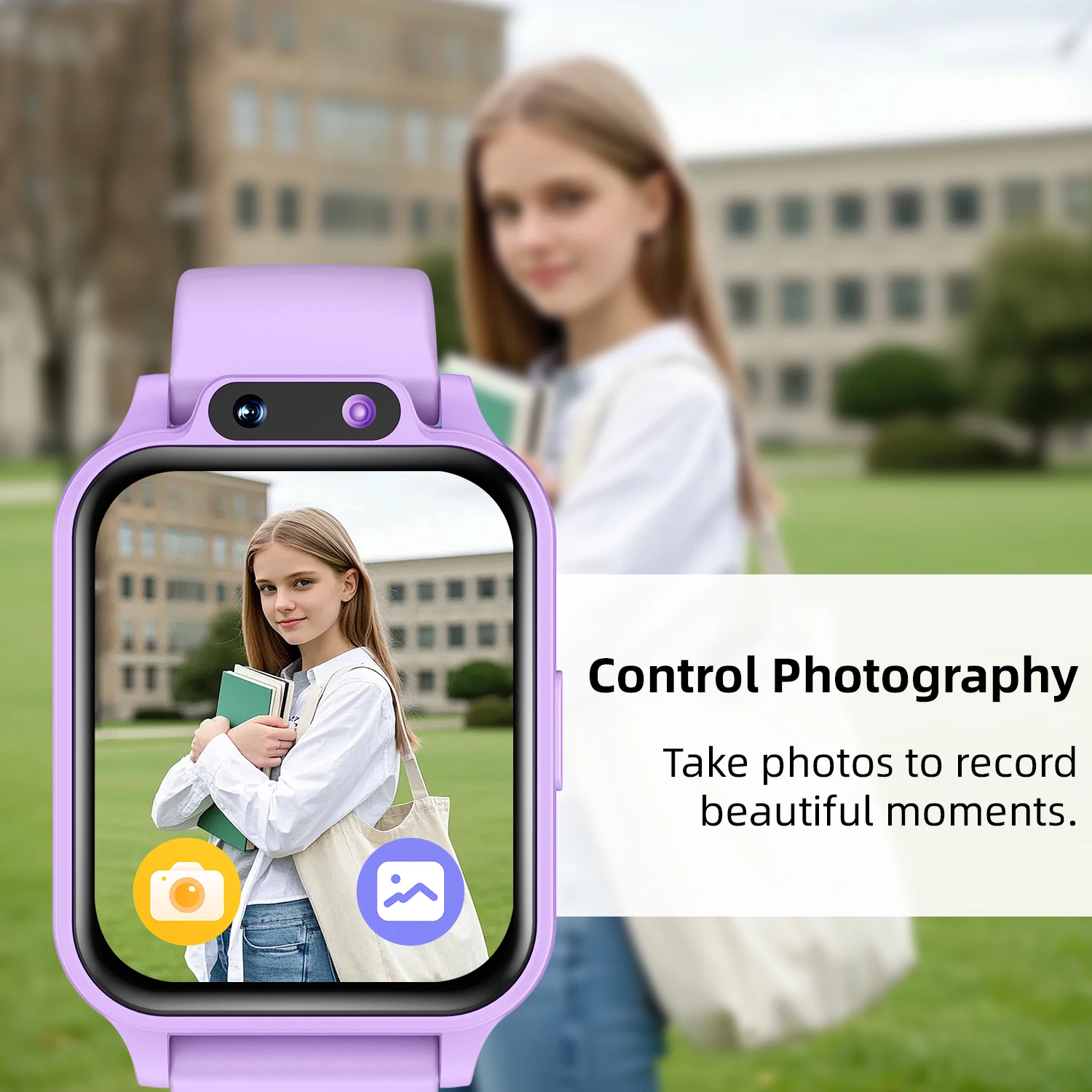 Équipée d’une caméra HD, la montre permet aux enfants de :