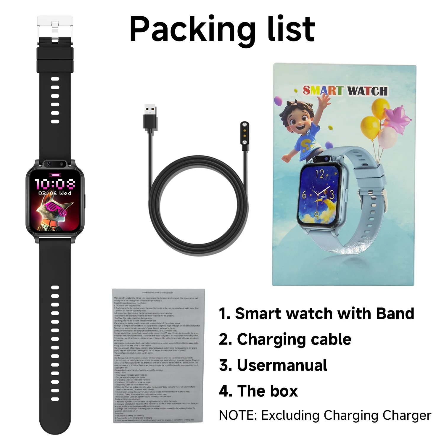 Son design carré, coloré et léger est parfaitement adapté aux poignets des enfants.
