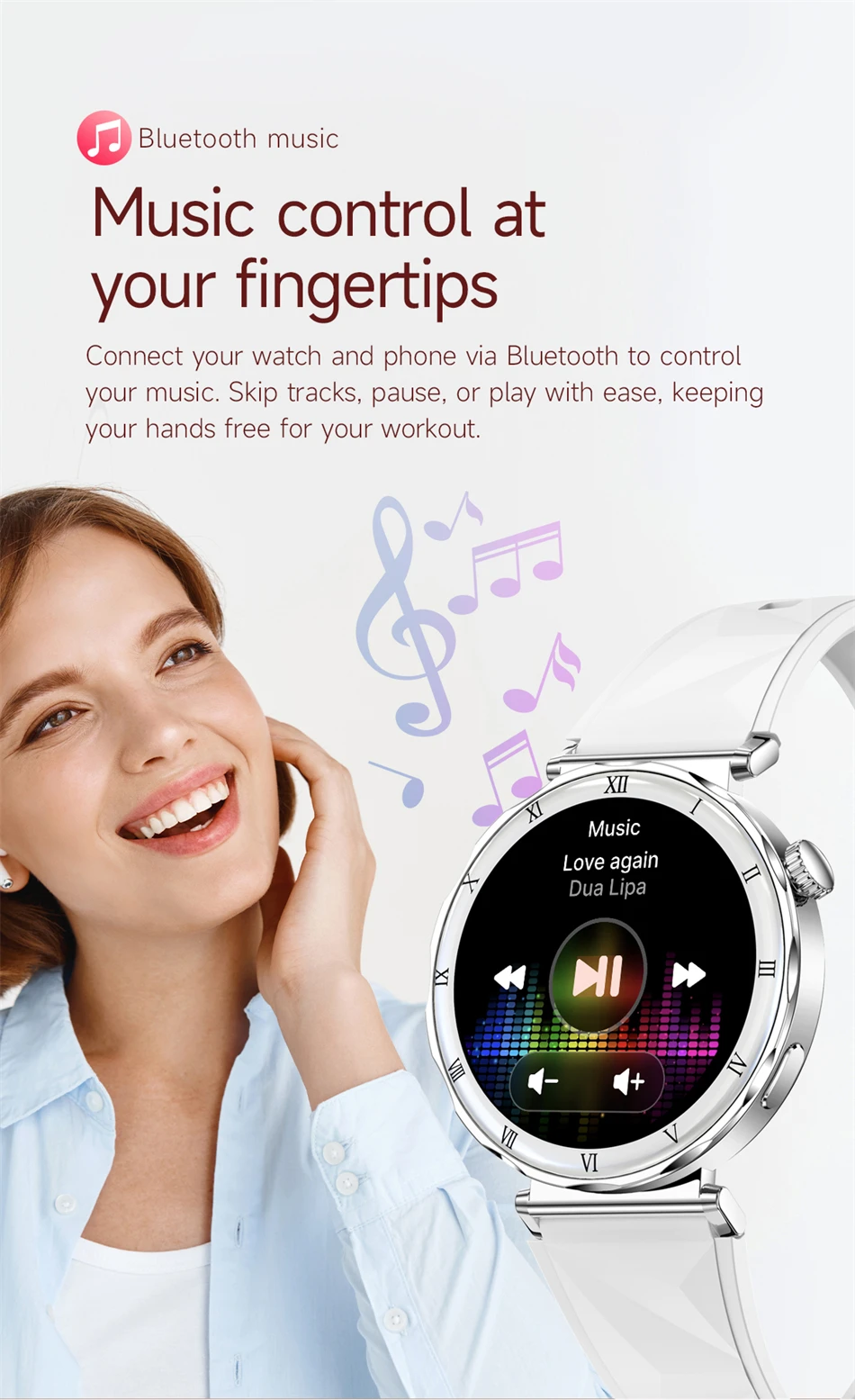 Cette montre connectée femme combine design raffiné et fonctionnalités intelligentes pour accompagner votre quotidien. Dotée d’un écran AMOLED rond 1.19 pouces haute résolution (390×390), elle offre un affichage lumineux, fluide et parfaitement lisible.