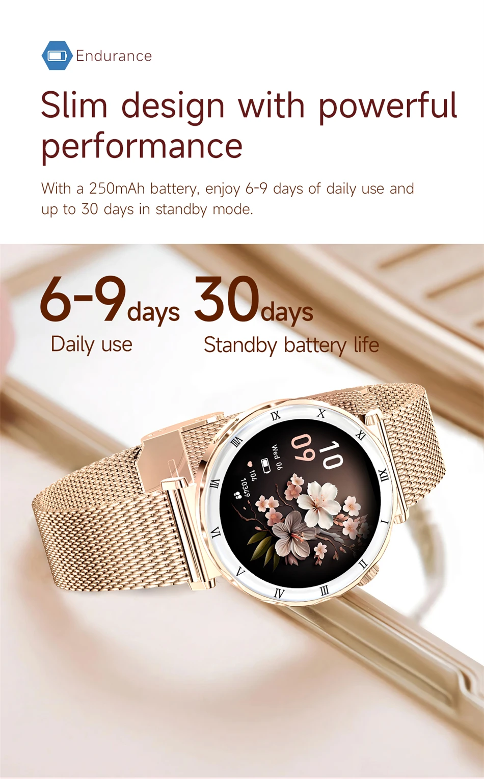 Cette montre connectée femme combine design raffiné et fonctionnalités intelligentes pour accompagner votre quotidien. Dotée d’un écran AMOLED rond 1.19 pouces haute résolution (390×390), elle offre un affichage lumineux, fluide et parfaitement lisible.