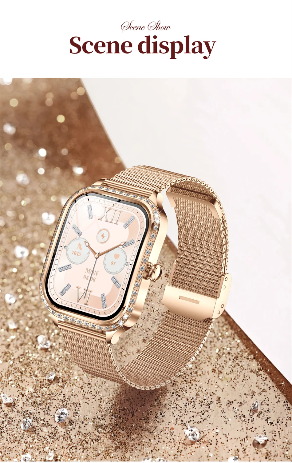 Cette montre connectée femme au design moderne et raffiné est idéale pour accompagner votre quotidien avec style. Dotée d’un écran 1.75 pouces HD (240×296), elle offre une visibilité claire et un affichage confortable pour consulter appels, messages et données santé.