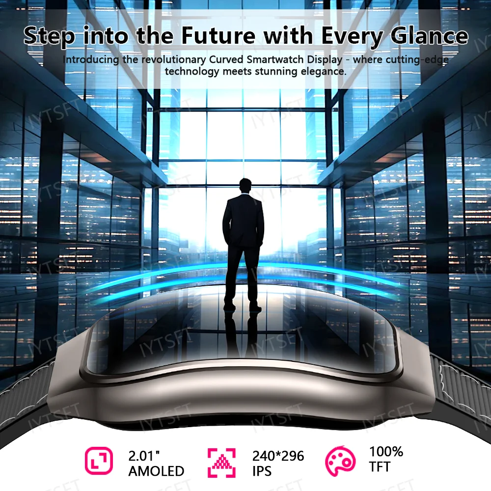 Montre connectée fitness avec appels Bluetooth et écran AMOLED 2.01 pouces, incurvé | Style, santé et activité quotidienne – NOIR