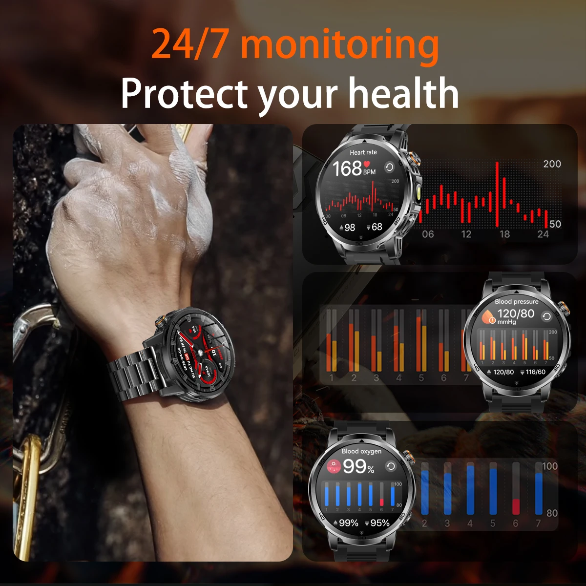 Compatible Android et iOS, cette smartwatch Bluetooth 5.3 offre appels, notifications, suivi santé 24h/24 et plus de 100 modes sportifs.