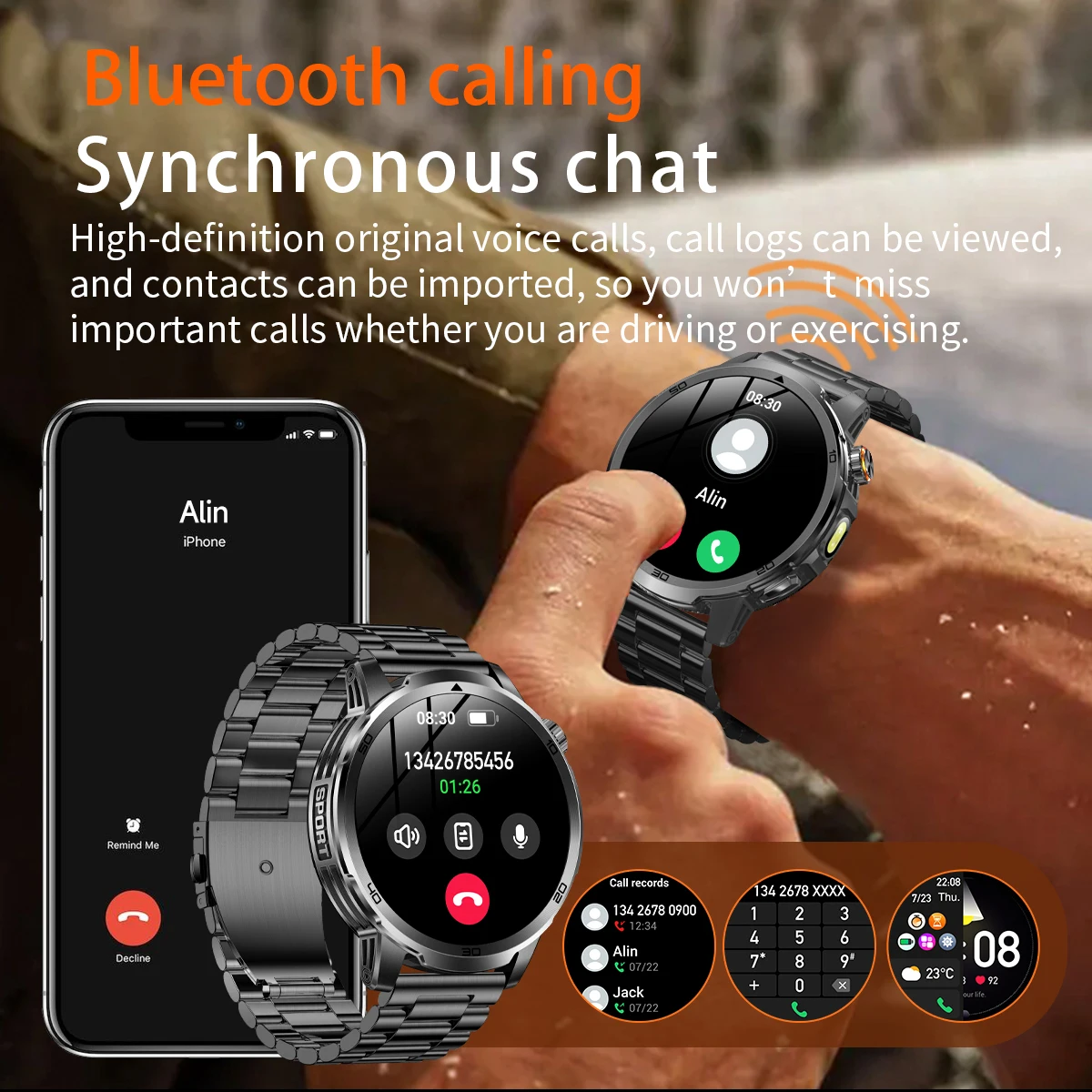 Compatible Android et iOS, cette smartwatch Bluetooth 5.3 offre appels, notifications, suivi santé 24h/24 et plus de 100 modes sportifs.