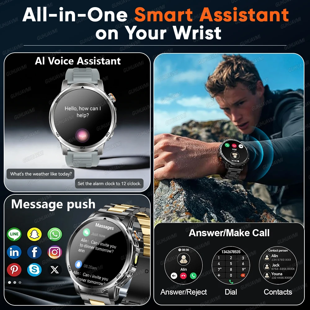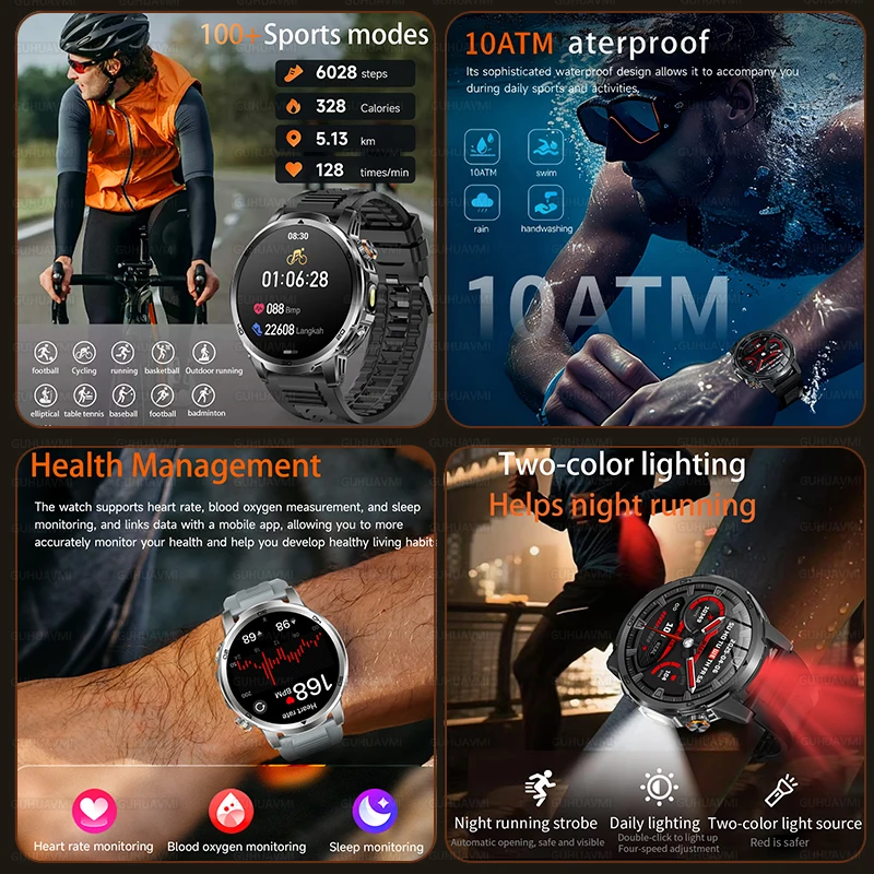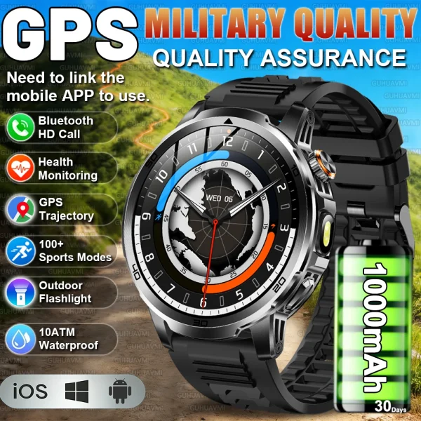 La montre connectée homme 2026 GUHUAVMI est conçue pour les sportifs et les hommes actifs recherchant performance, résistance et autonomie exceptionnelle. Équipée d’un écran AMOLED 1.85 pouces HD, d’une batterie haute capacité 1000mAh et d’une étanchéité professionnelle 10ATM + IP69K, elle est idéale pour le sport intensif, la natation et les activités extérieures.