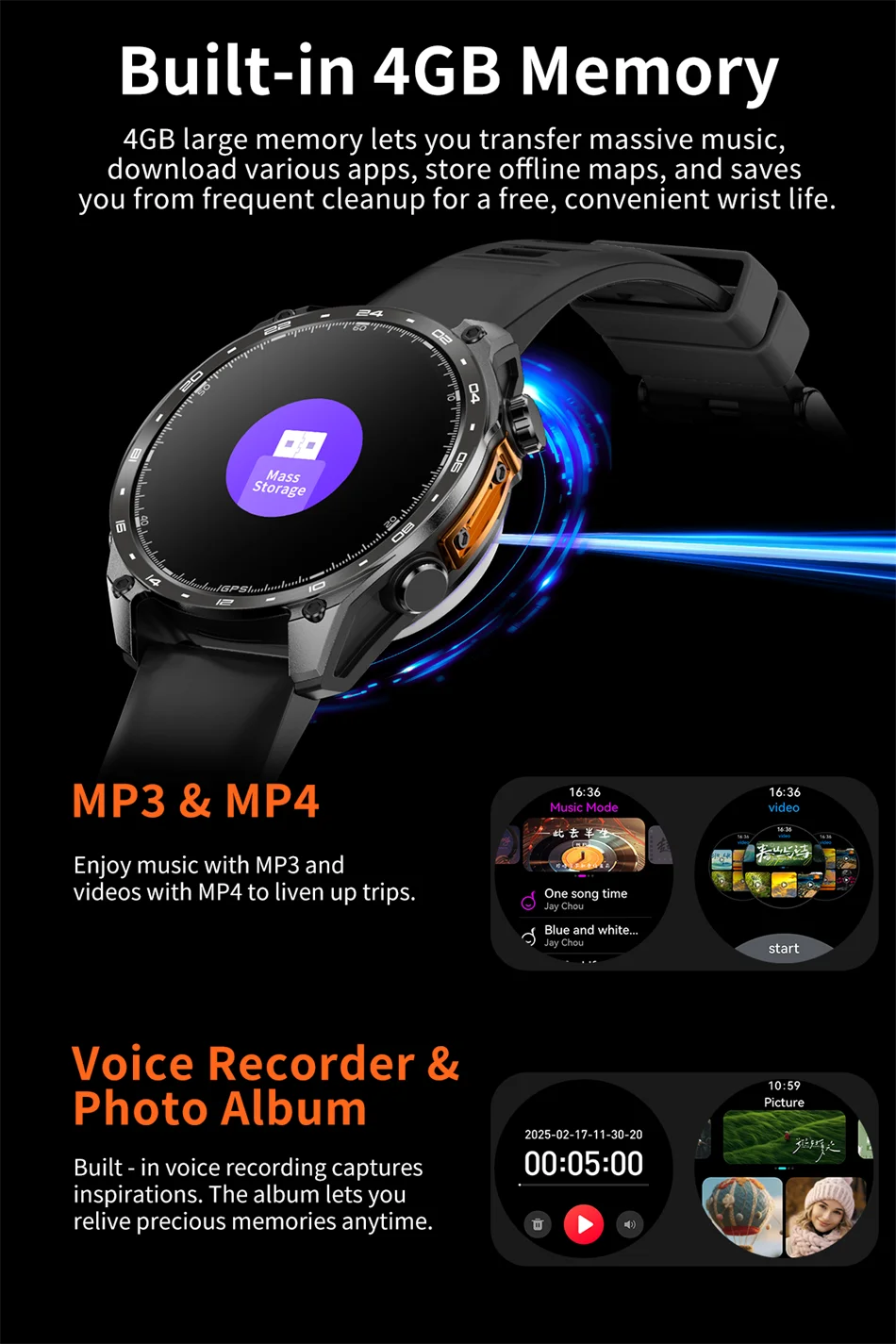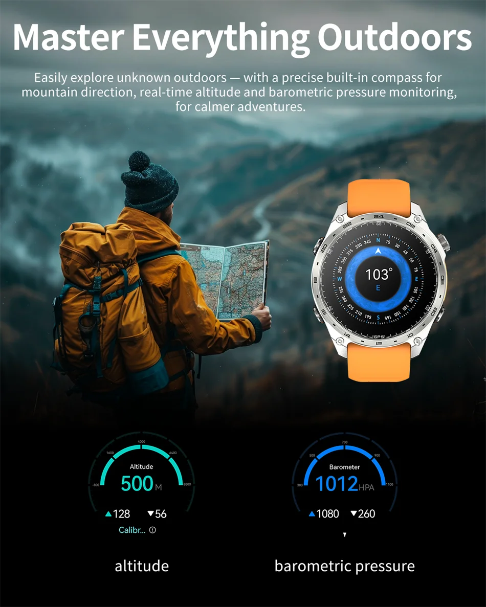 Montre Connectée Homme GPS 50M Étanche – Cartes Hors Ligne, Sport Outdoor, Musique & Vidéo – MESH ARGENT