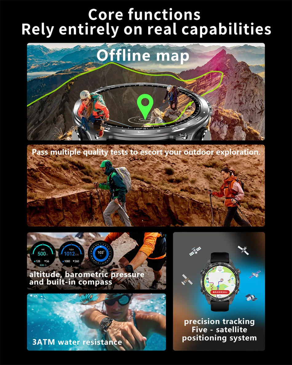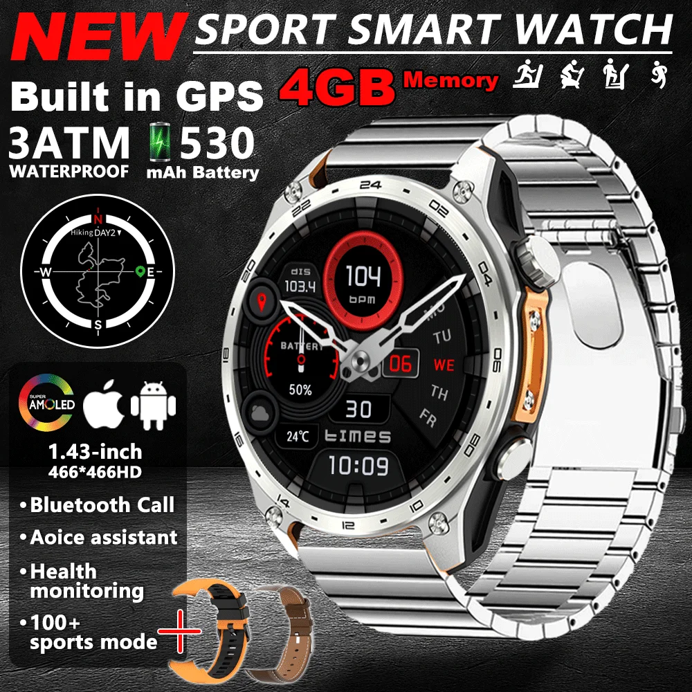 Montre Connectée Homme GPS 50M Étanche – Cartes Hors Ligne, Sport Outdoor, Musique & Vidéo - ORANGE
