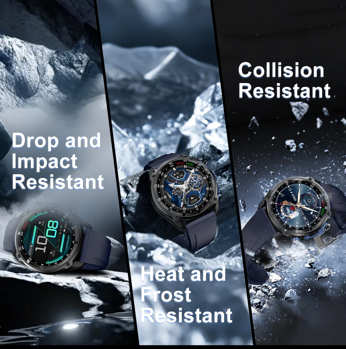 Cette montre connectée homme GPS est conçue pour l’exploration, le sport intensif et les environnements extrêmes. Équipée d’un écran AMOLED 1.43 pouces 466×466 haute résolution avec protection type Gorilla Glass, elle offre une navigation GPS intégrée avec cartes hors ligne, une autonomie exceptionnelle et une robustesse militaire.
