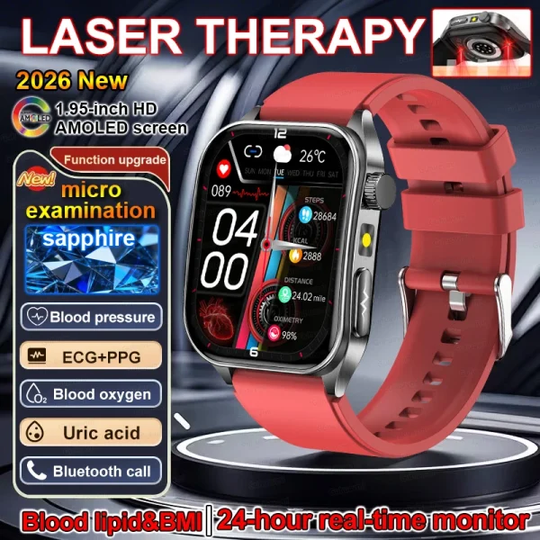 Montre connectée santé avec ECG, suivi sanguin et thérapie laser | Bien-être avancé – ROUGE
