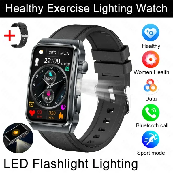 Montre connectée santé ECG avec suivi sanguin et thérapie pulsée | Bien-être médical – CUIRE NOIR + 1 BRACELET
