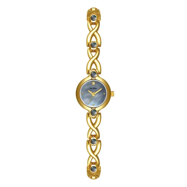 Montre Femme Élégante Noir & Or – Style Rétro, Bracelet Acier Doré, Design Chic – OR / BLEU