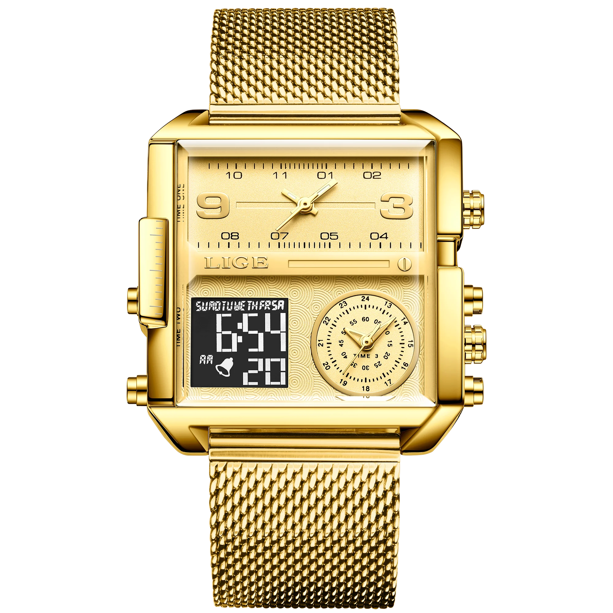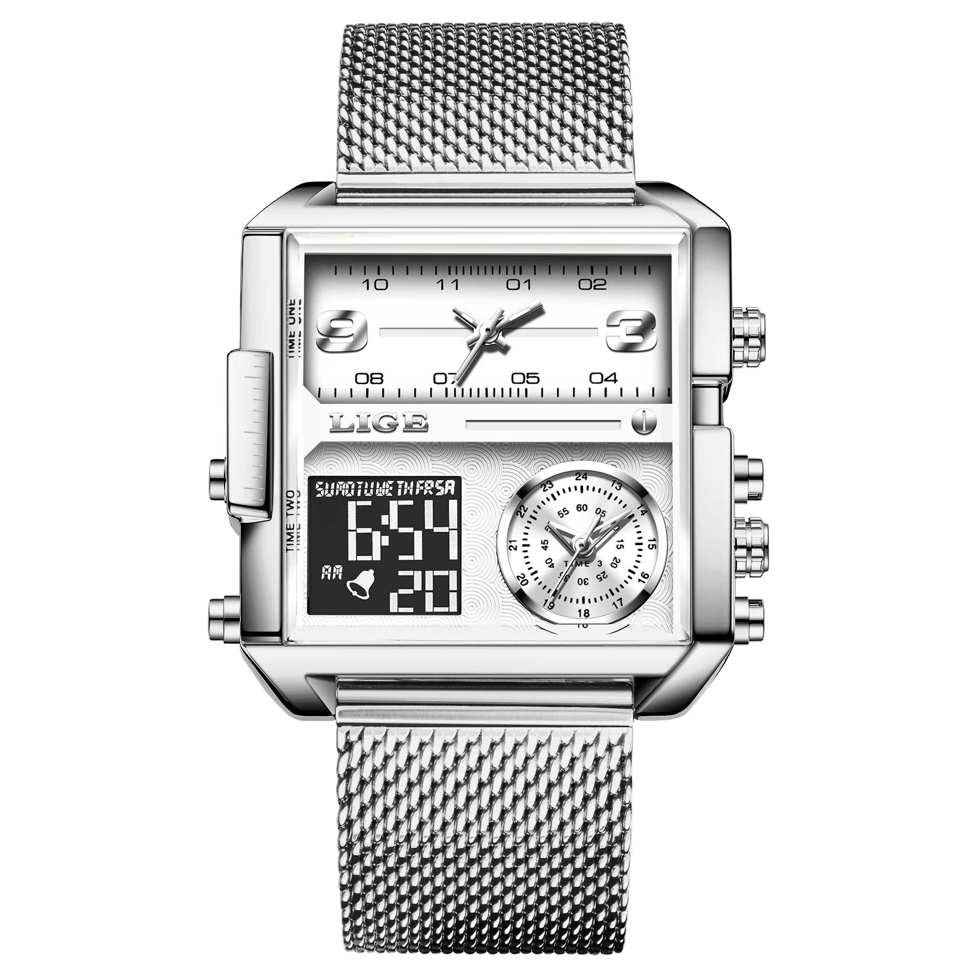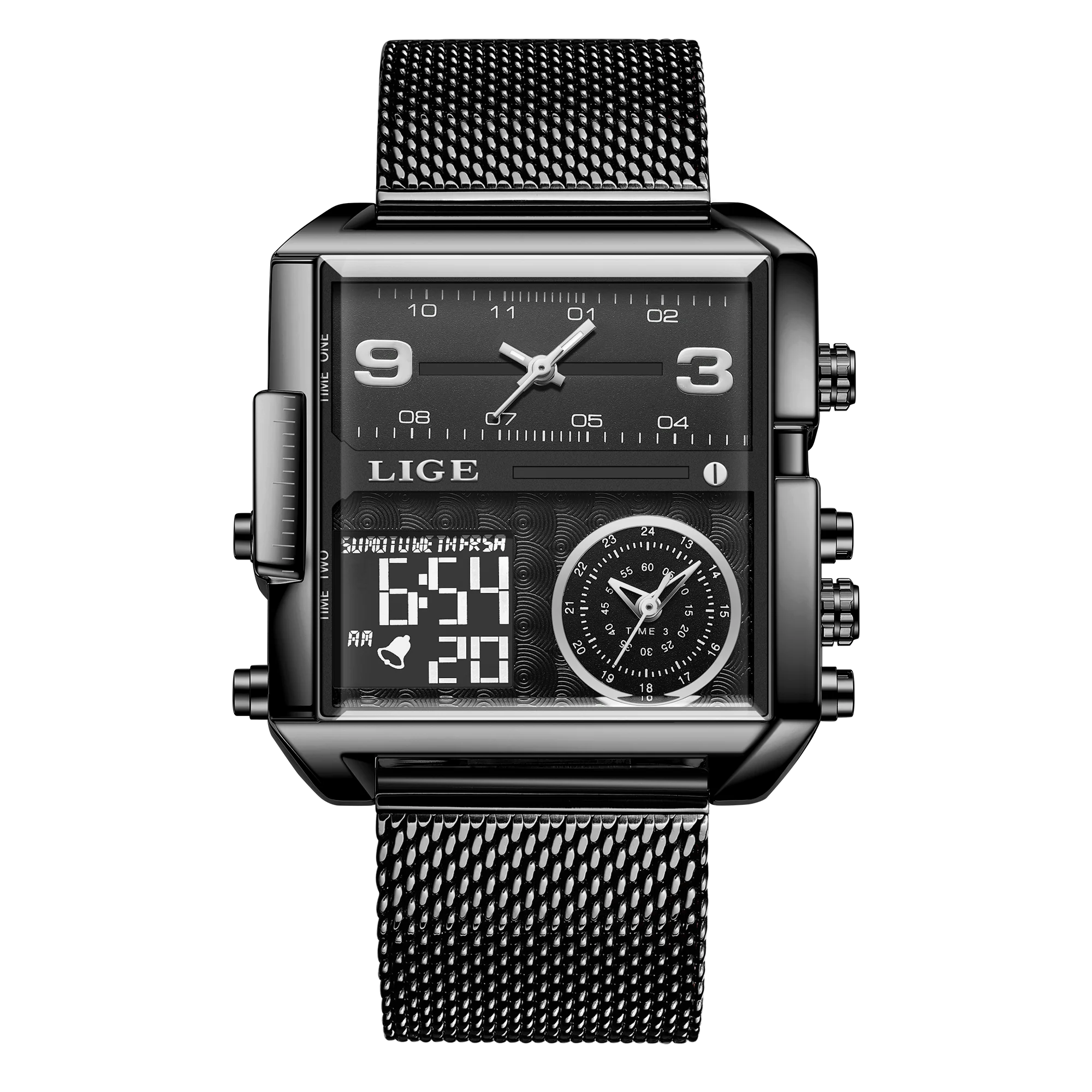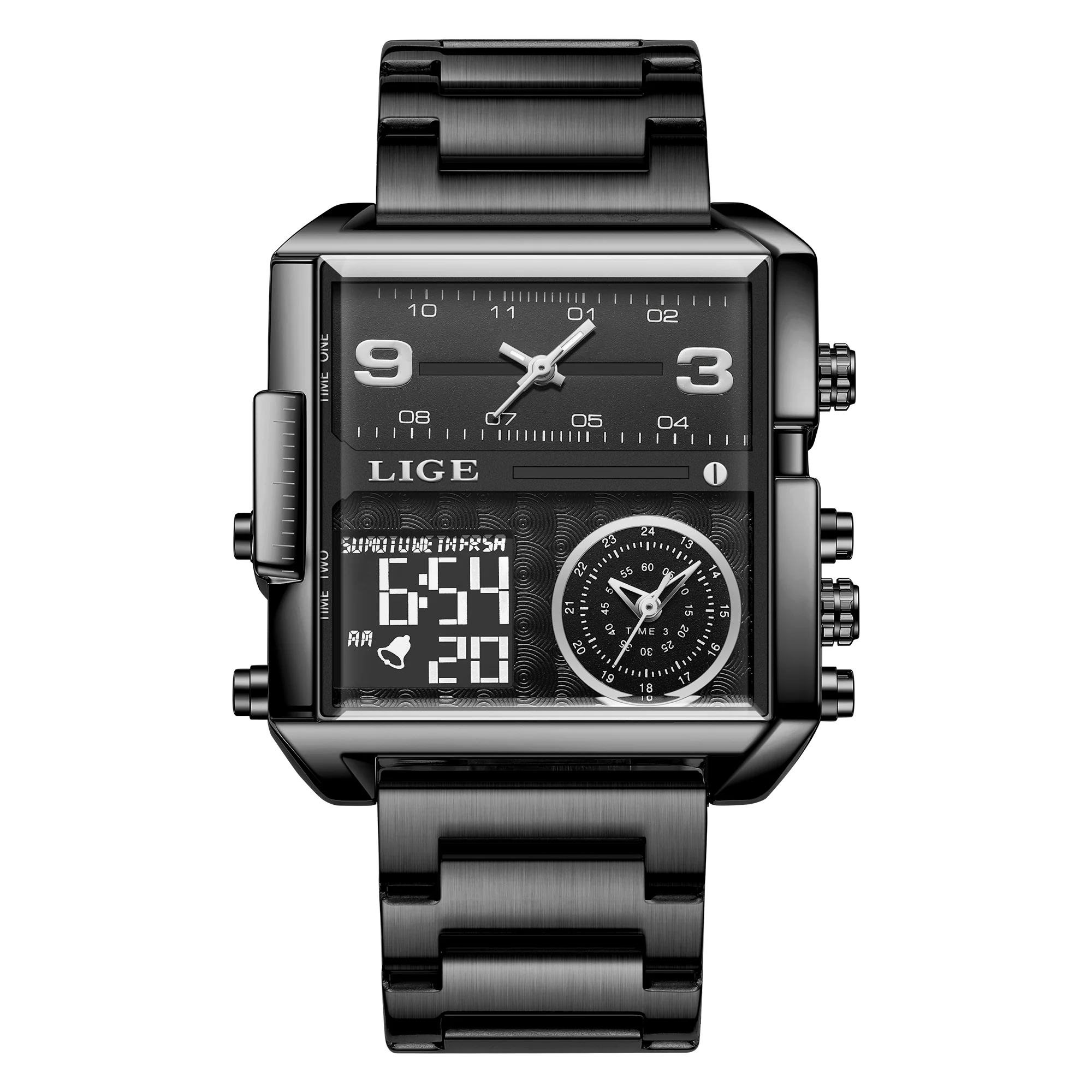Cette montre homme combine un design carré moderne avec des fonctionnalités pratiques pour le quotidien. Son double affichage analogique et digital permet une lecture claire de l’heure tout en intégrant plusieurs fonctions utiles comme le chronomètre, l’alarme et le calendrier.