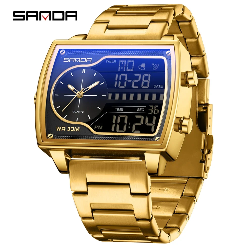 Montre Homme Analogique Digitale Étanche 50M – Bracelet Acier Inoxydable - MARRON / OR
