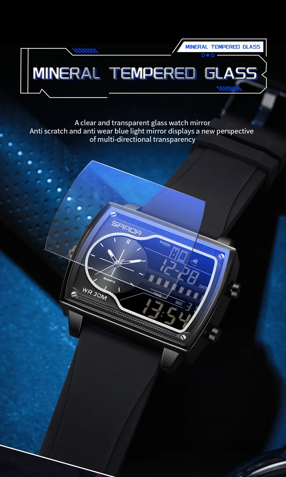 Cette montre sport homme combine un design robuste et moderne avec des fonctionnalités pratiques pour le quotidien. Son double affichage analogique et digital permet une lecture claire de l’heure tout en offrant plusieurs fonctions utiles comme l’alarme, le calendrier et l’éclairage LED.