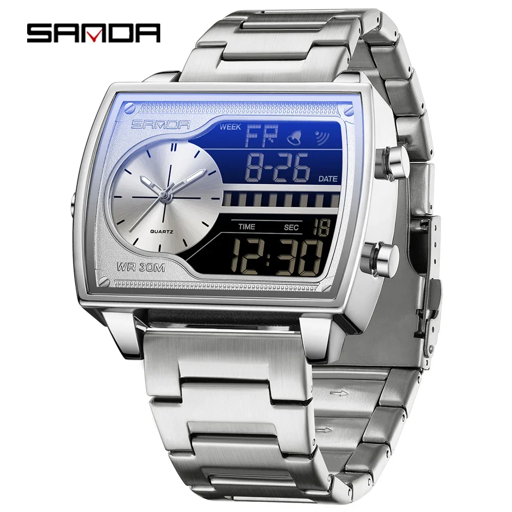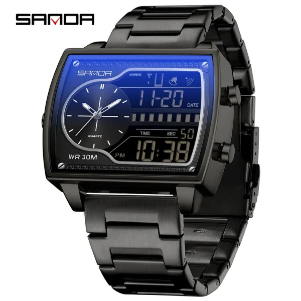 Montre Homme Analogique Digitale Étanche 50M – Bracelet Acier Inoxydable - METAL NOIR