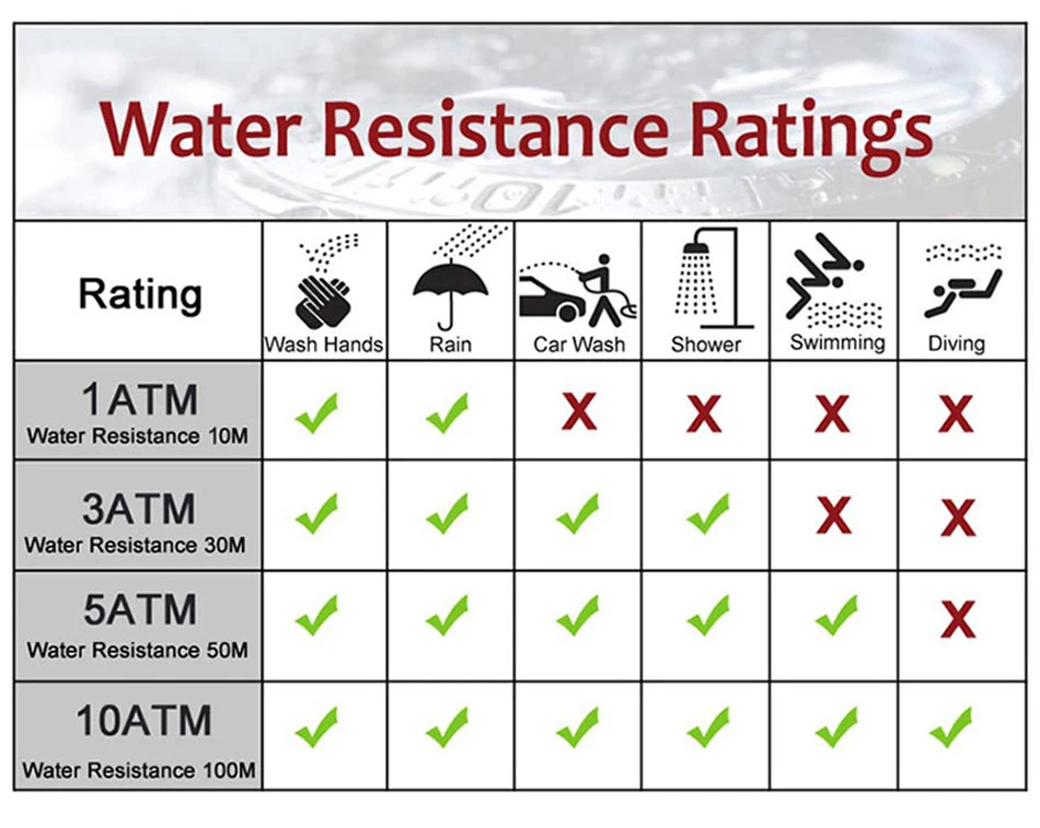 5 ATM (50 m / 165 ft)