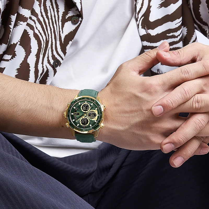 Cette montre analogique et digitale combine élégance, style sportif et fonctionnalités pratiques. Son cadran moderne à double affichage permet une lecture complète de l’heure tout en offrant des fonctions utiles comme l’alarme, le calendrier et l’affichage du jour.