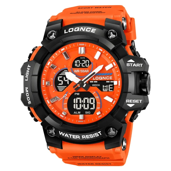 Cette montre sport analogique et digitale est conçue pour les personnes actives qui recherchent une montre robuste, moderne et pratique. Son grand cadran assure une excellente lisibilité et son design dynamique s’adapte parfaitement aux activités sportives et au quotidien.