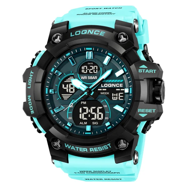 Montre Sport Analogique Digitale Étanche 50M – Chronomètre, Alarme et Calendrier – TURQUOISE