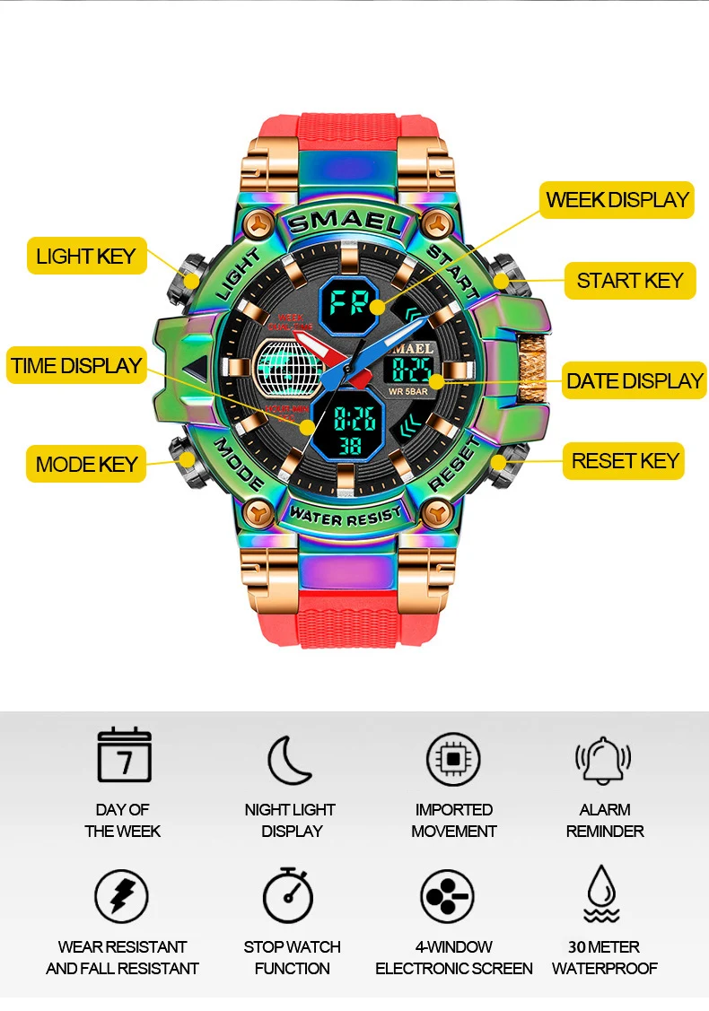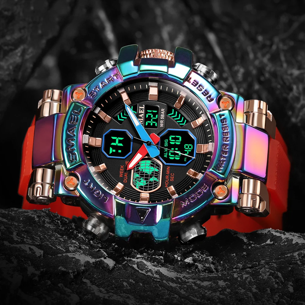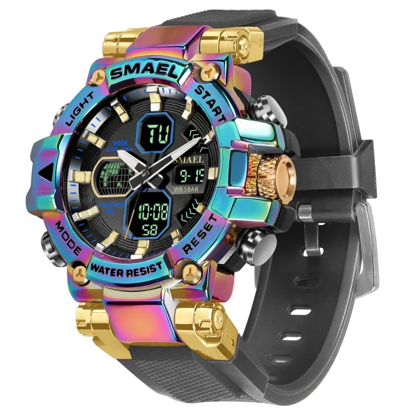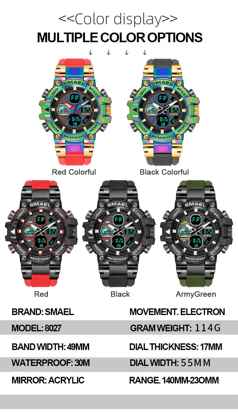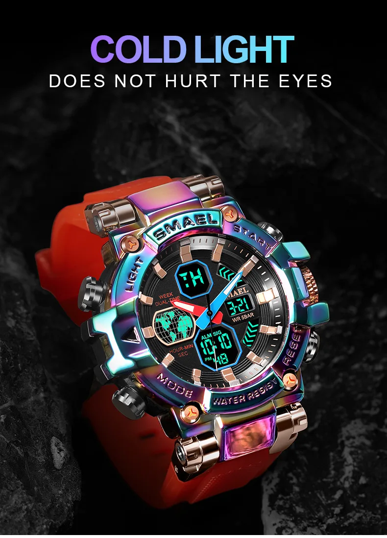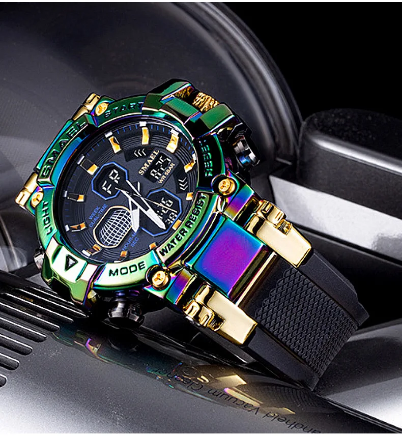 Montre Sport Analogique Digitale Homme – Chronomètre, Alarme et Éclairage LED - NOIR MUTICOULEUR