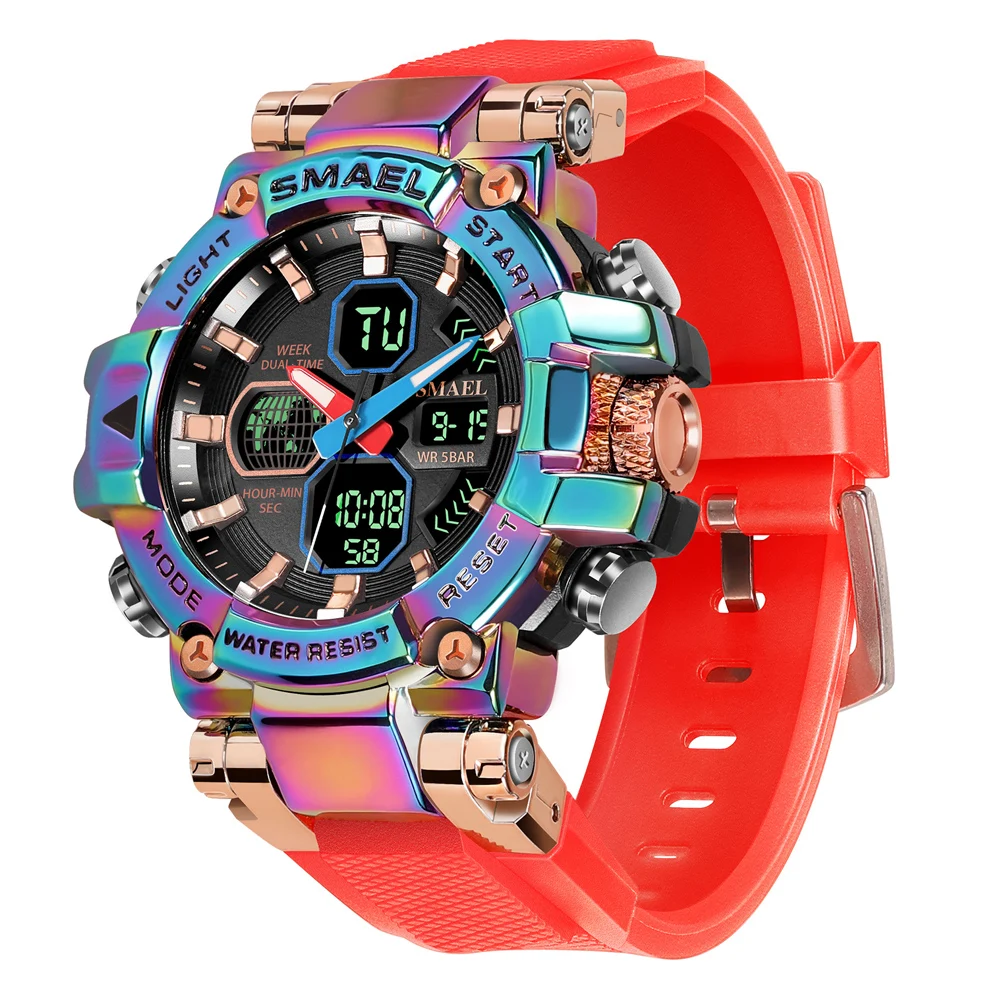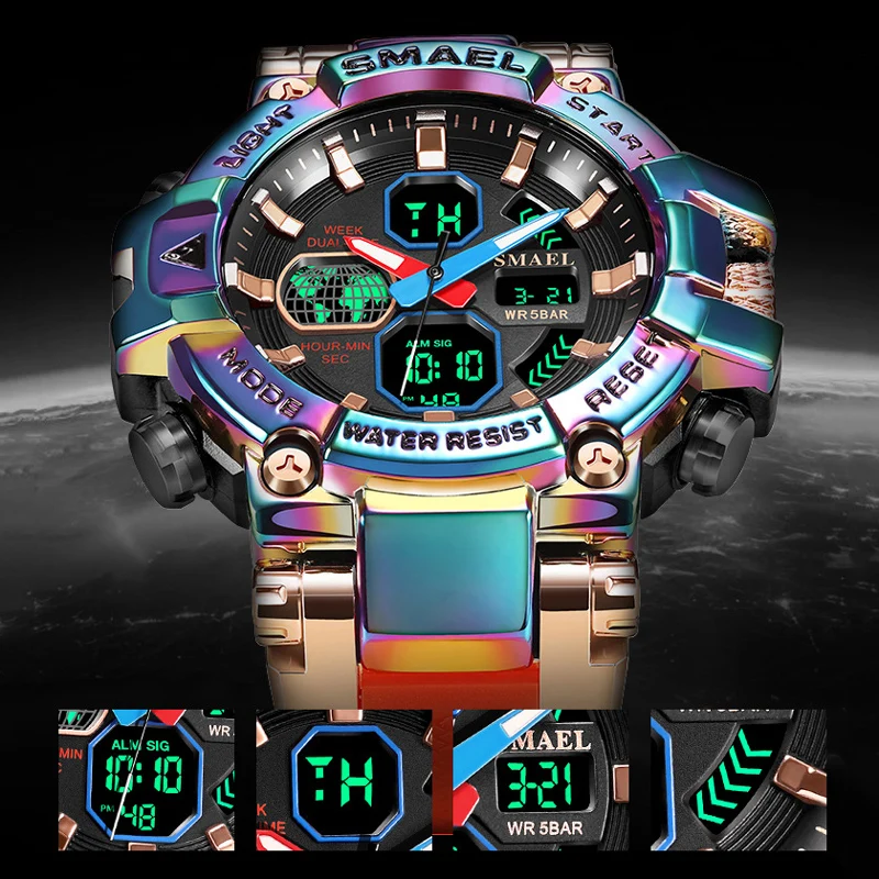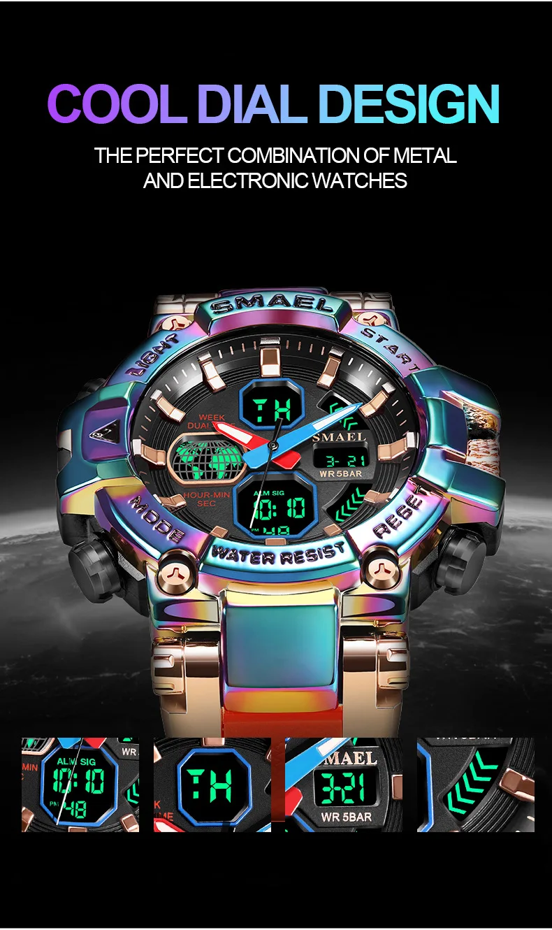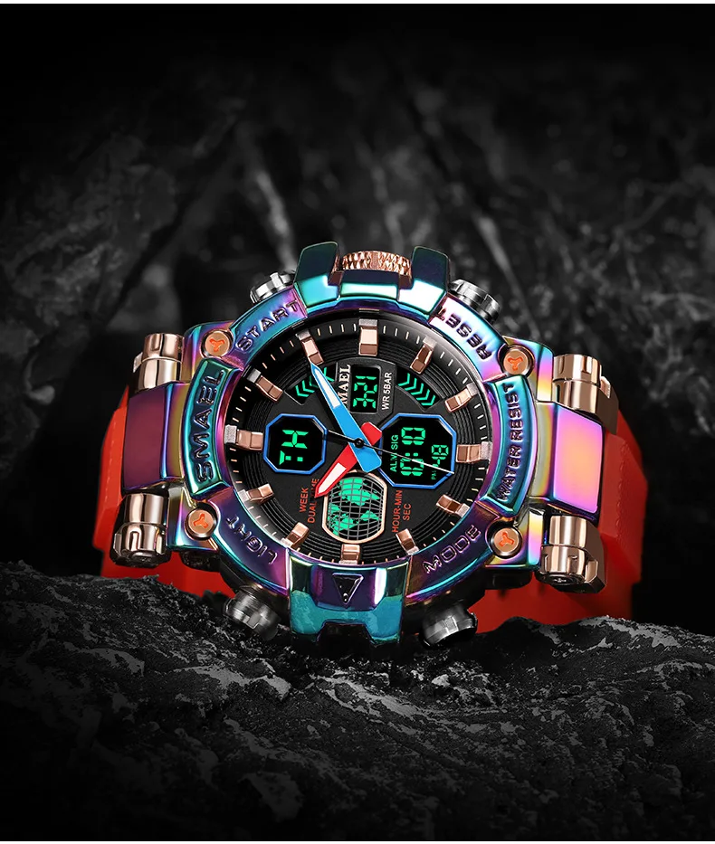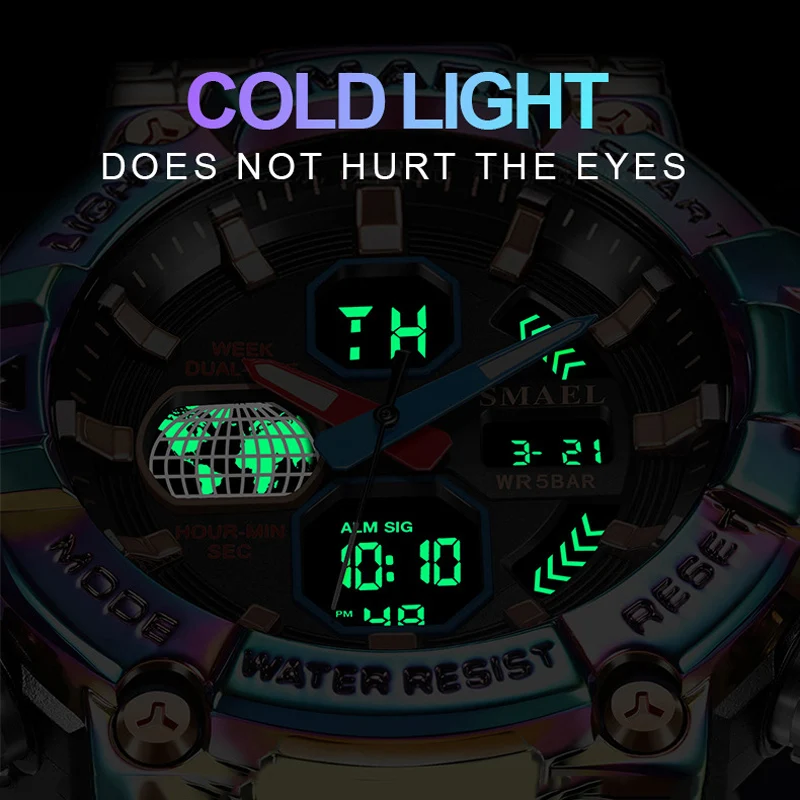 Montre Sport Analogique Digitale Homme – Chronomètre, Alarme et Éclairage LED - NOIR MUTICOULEUR