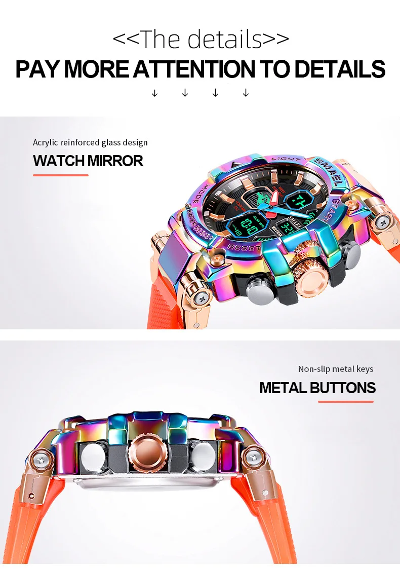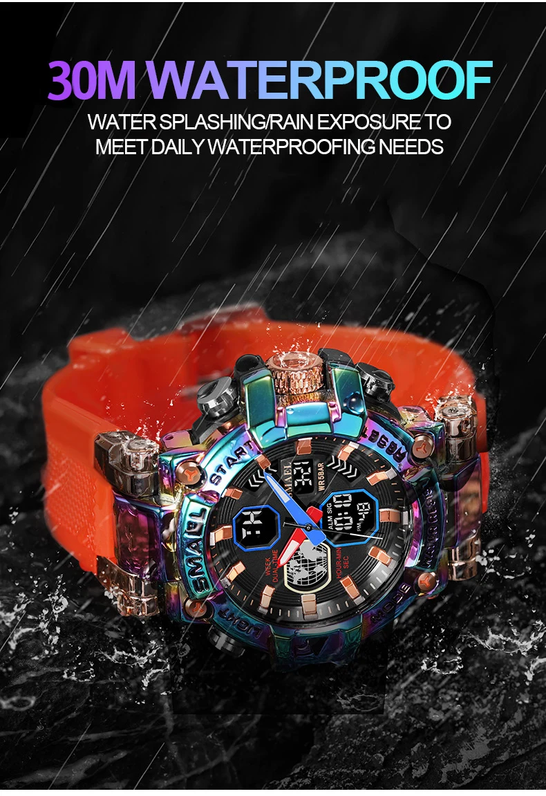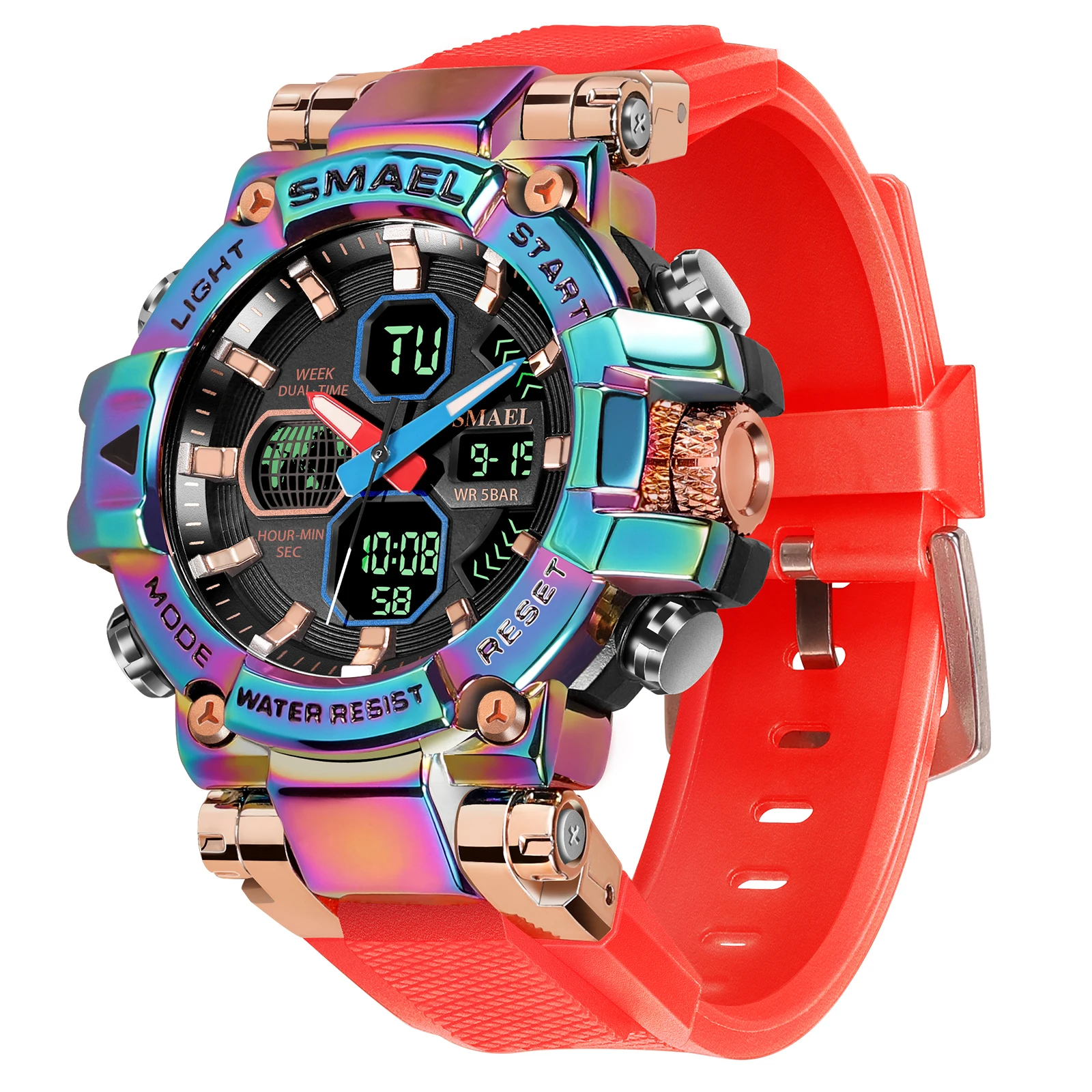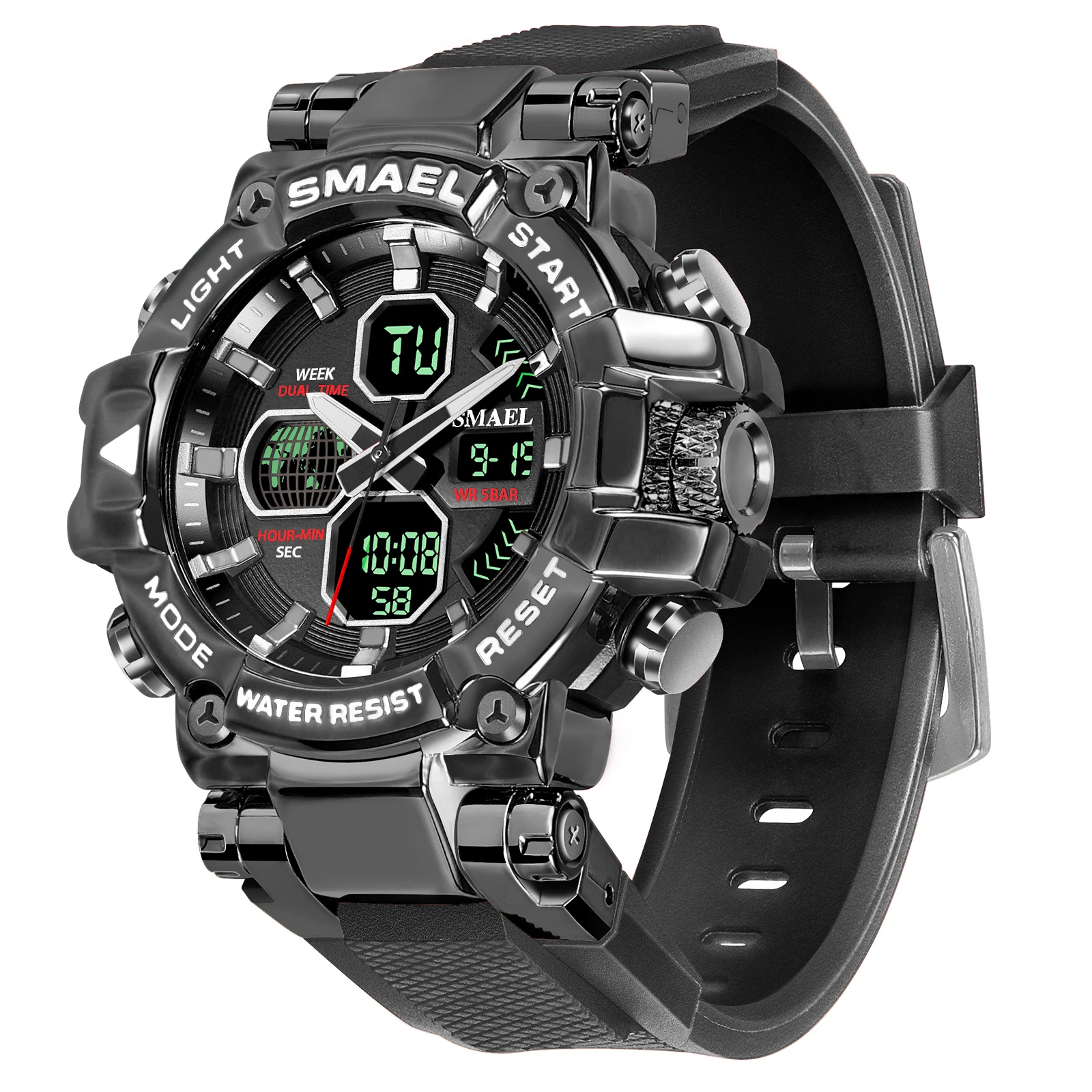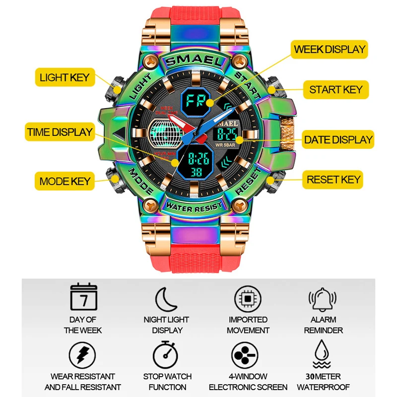 Montre Sport Analogique Digitale Homme – Chronomètre, Alarme et Éclairage LED - NOIR MUTICOULEUR