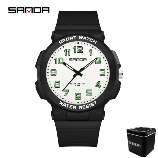 Montre Sport Enfant et Ado Étanche 50M – Montre Quartz avec Bracelet TPU – NOIR ET BLANC