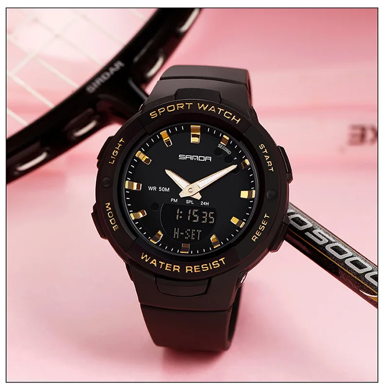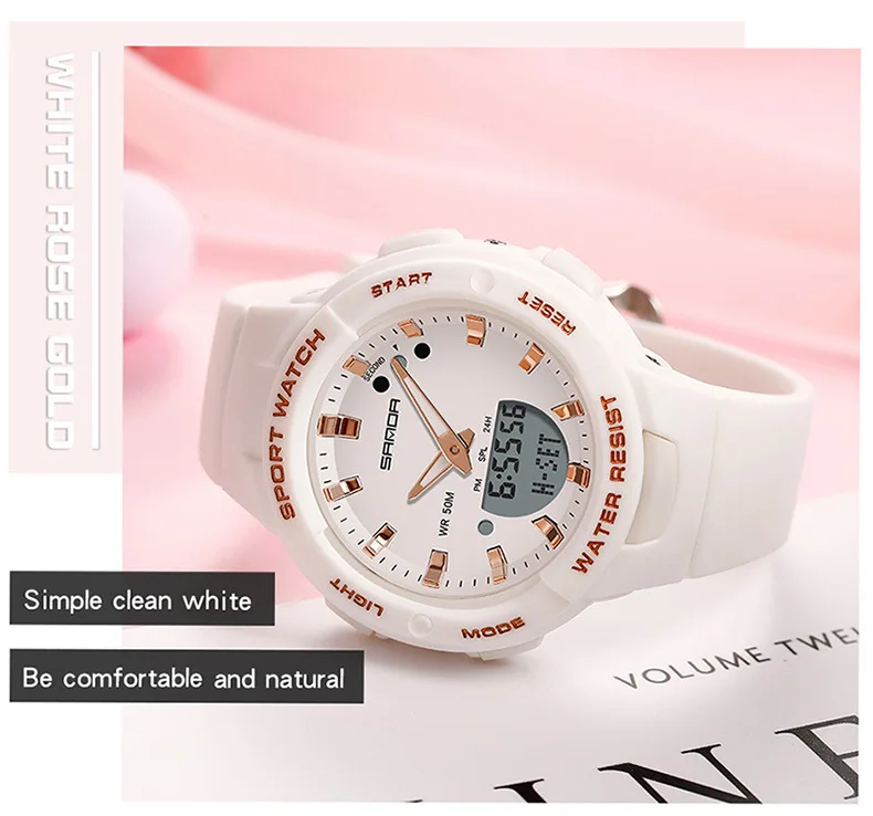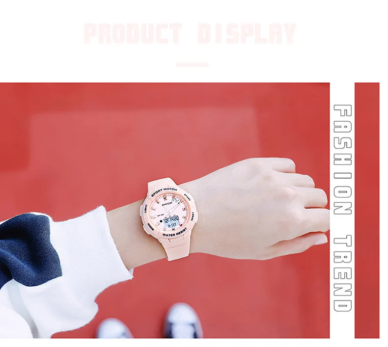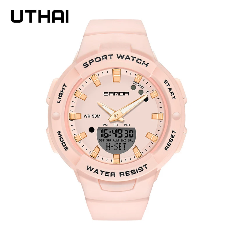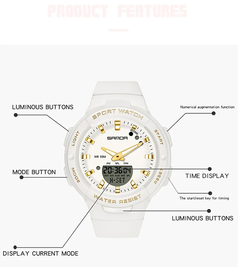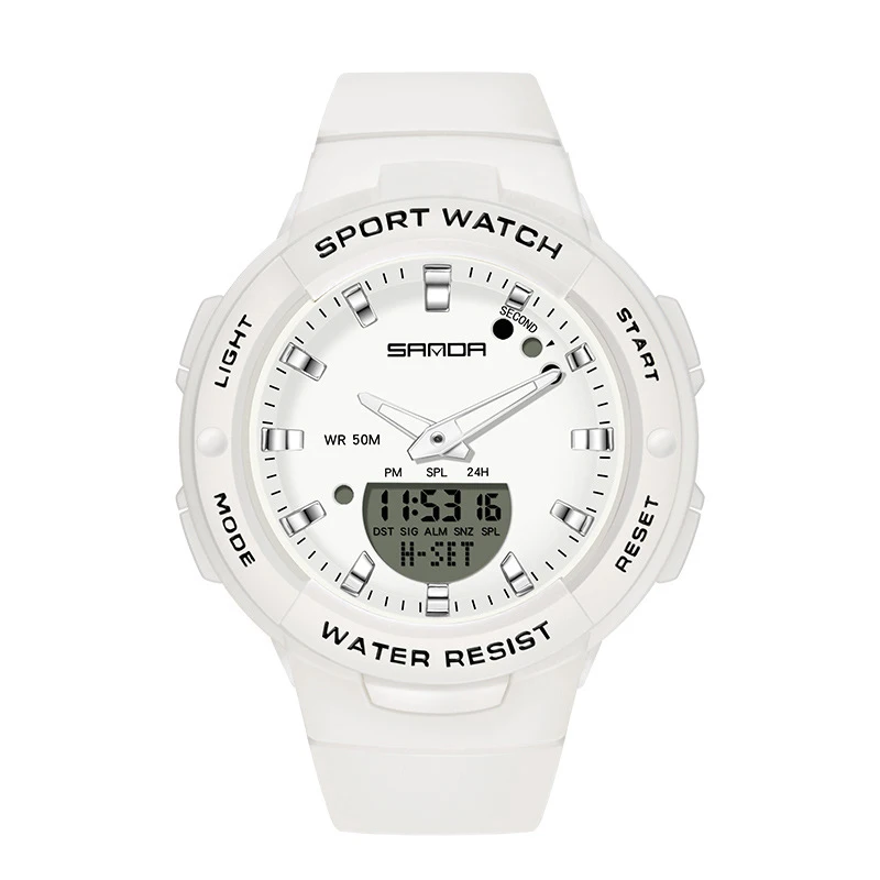 Cette montre sport femme combine un design dynamique et des fonctionnalités pratiques pour accompagner les activités quotidiennes et sportives. Son double affichage analogique et digital permet une lecture claire de l’heure tout en offrant plusieurs fonctions utiles comme le chronomètre, l’alarme et le calendrier.