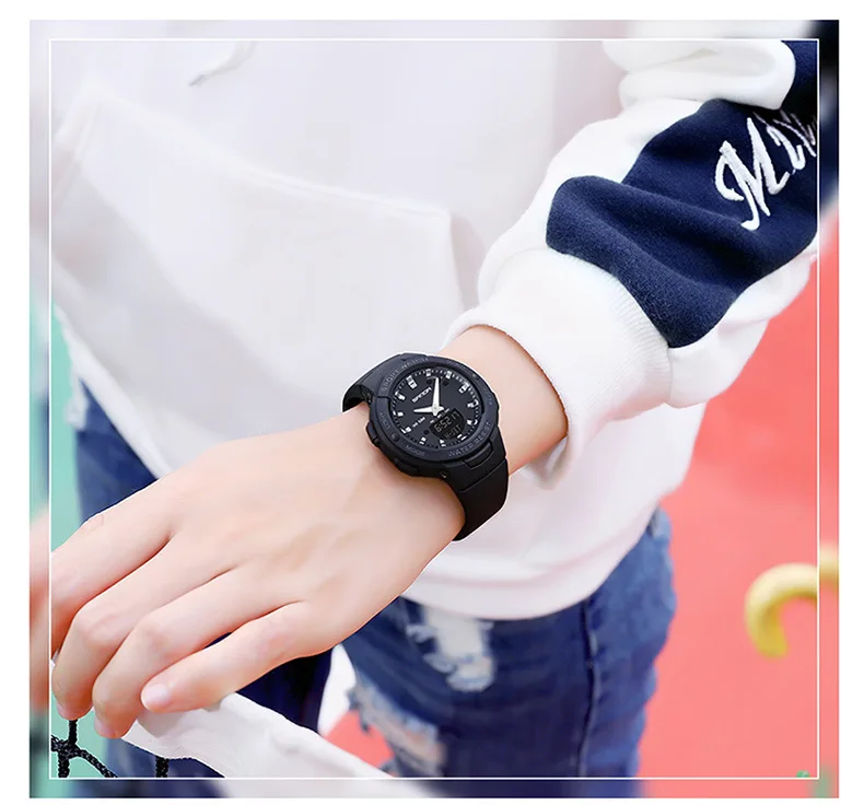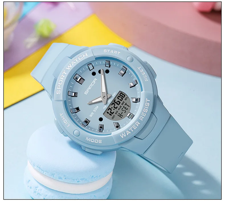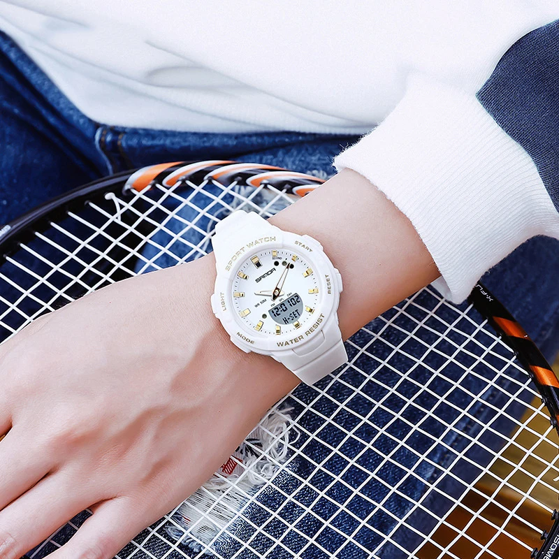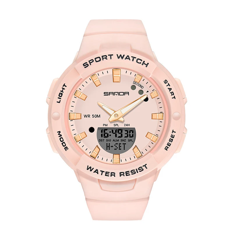 Cette montre sport femme combine un design dynamique et des fonctionnalités pratiques pour accompagner les activités quotidiennes et sportives. Son double affichage analogique et digital permet une lecture claire de l’heure tout en offrant plusieurs fonctions utiles comme le chronomètre, l’alarme et le calendrier.