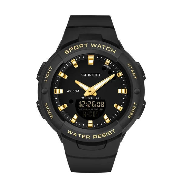 Montre Sport Femme Analogique Digitale Étanche 50M – Chronomètre et Alarme - NOIR / OR