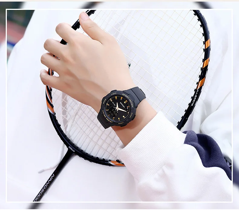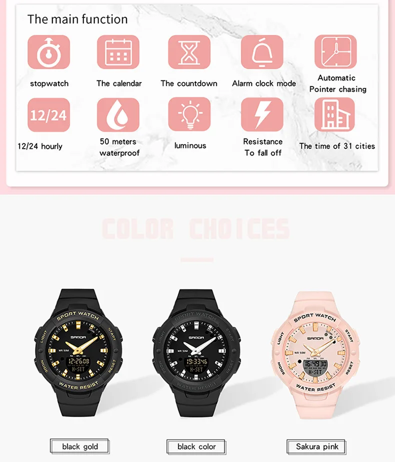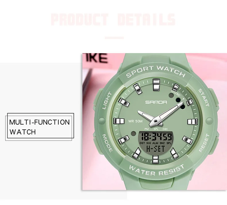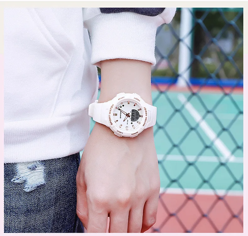 Cette montre sport femme combine un design dynamique et des fonctionnalités pratiques pour accompagner les activités quotidiennes et sportives. Son double affichage analogique et digital permet une lecture claire de l’heure tout en offrant plusieurs fonctions utiles comme le chronomètre, l’alarme et le calendrier.