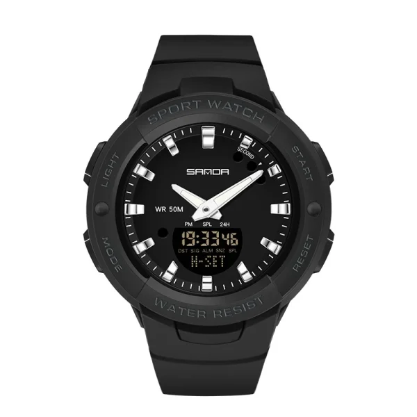 Montre Sport Femme Analogique Digitale Étanche 50M – Chronomètre et Alarme - NOIR