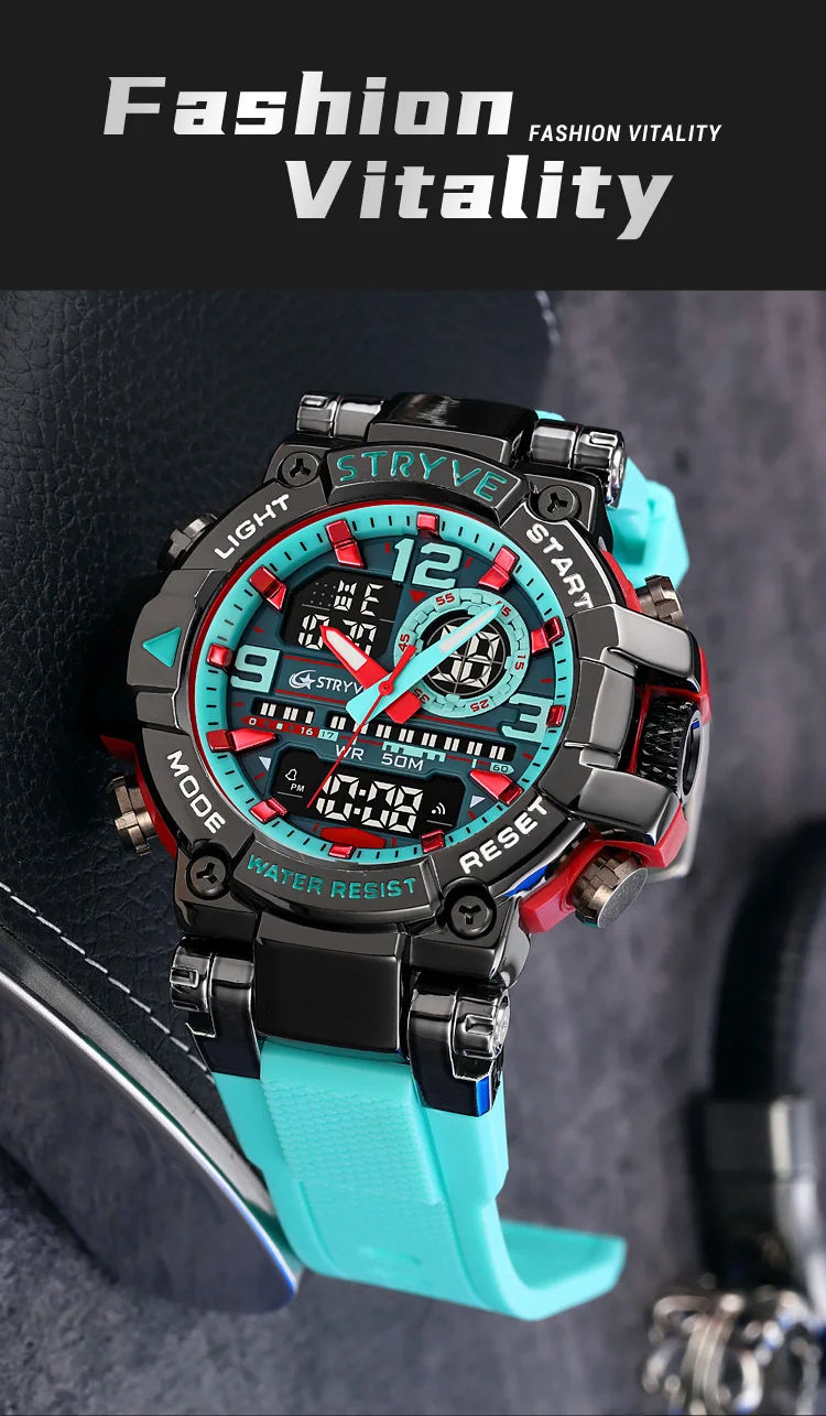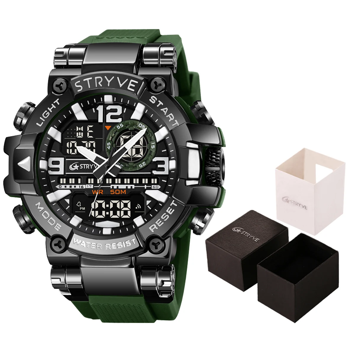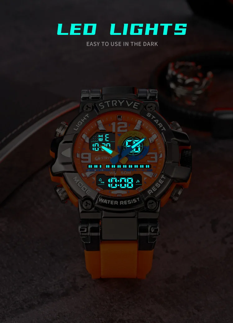 La montre STRYVE S8025 est conçue pour les hommes actifs qui recherchent une montre robuste, sportive et moderne.