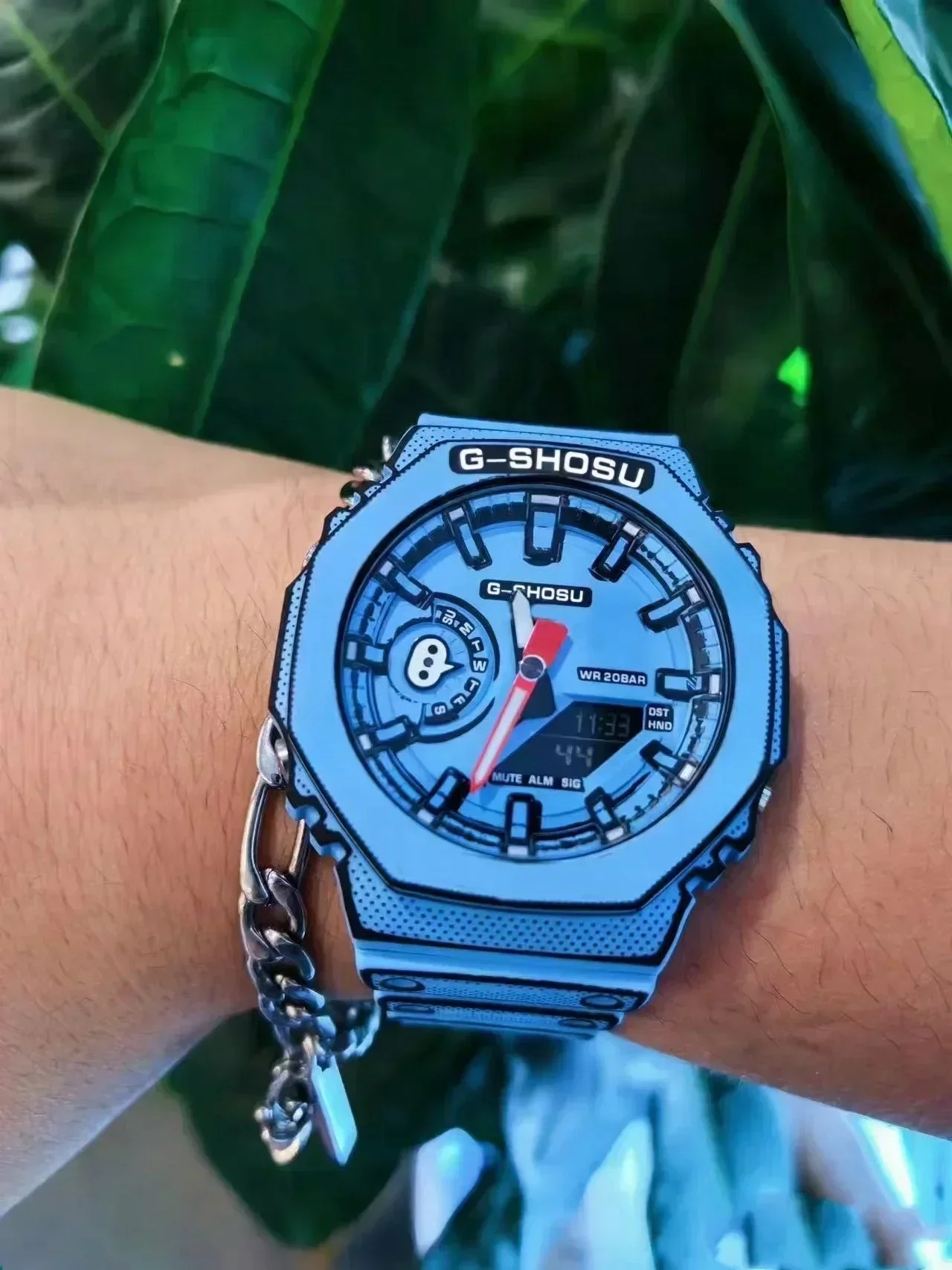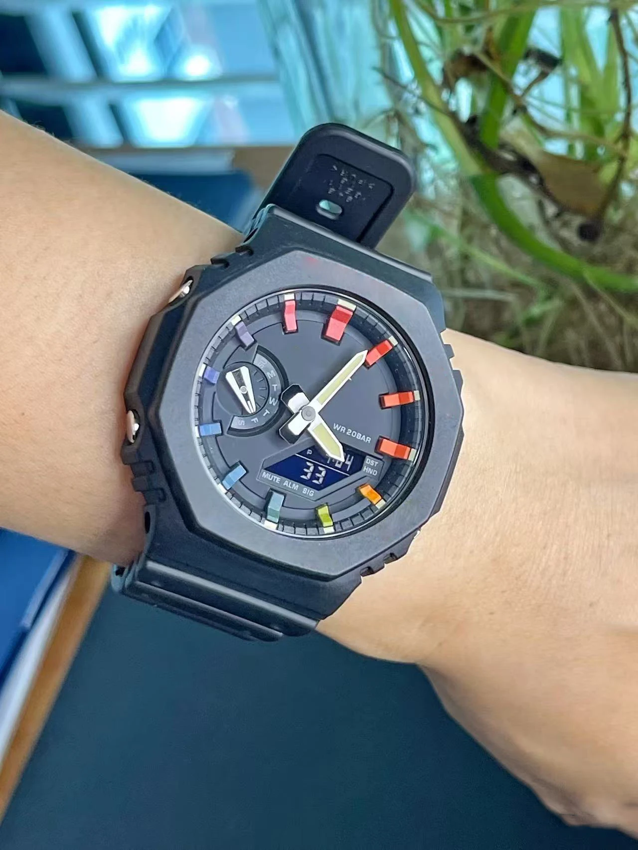 Cette montre sport unisexe combine style sportif et fonctionnalités pratiques pour un usage quotidien. Son double affichage analogique et digital permet une lecture rapide et claire de l’heure, tandis que son grand cadran assure une excellente visibilité.