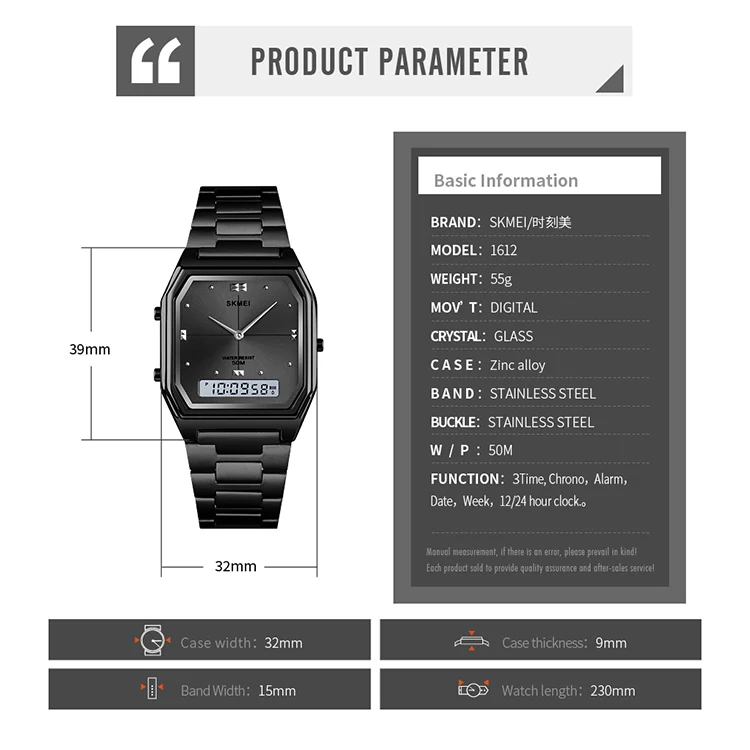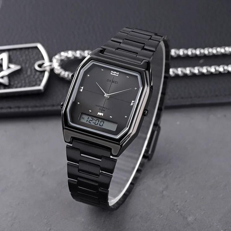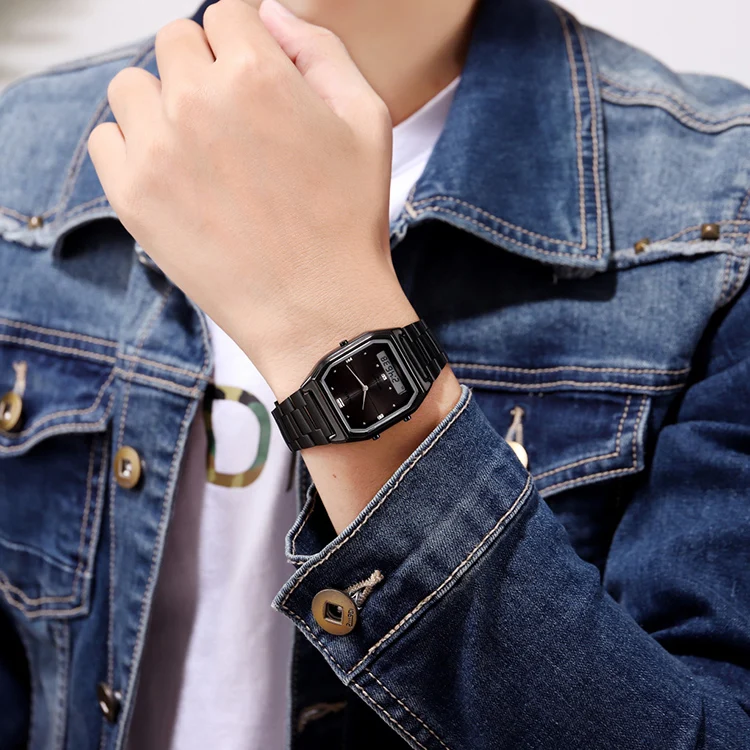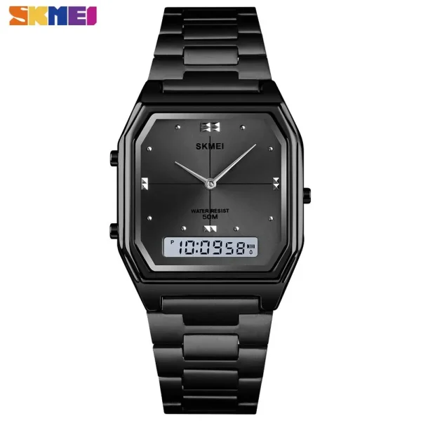 Montre Unisexe Analogique Digitale Étanche 50M – Chronomètre, Alarme et Double Fuseau Horaire - NOIR