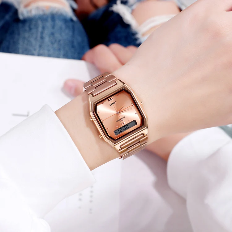 Cette montre unisexe combine un design élégant avec des fonctionnalités pratiques pour le quotidien. Son affichage analogique et digital permet une lecture précise de l’heure tout en offrant des fonctions supplémentaires comme le chronomètre, l’alarme et l’affichage multi fuseaux horaires.